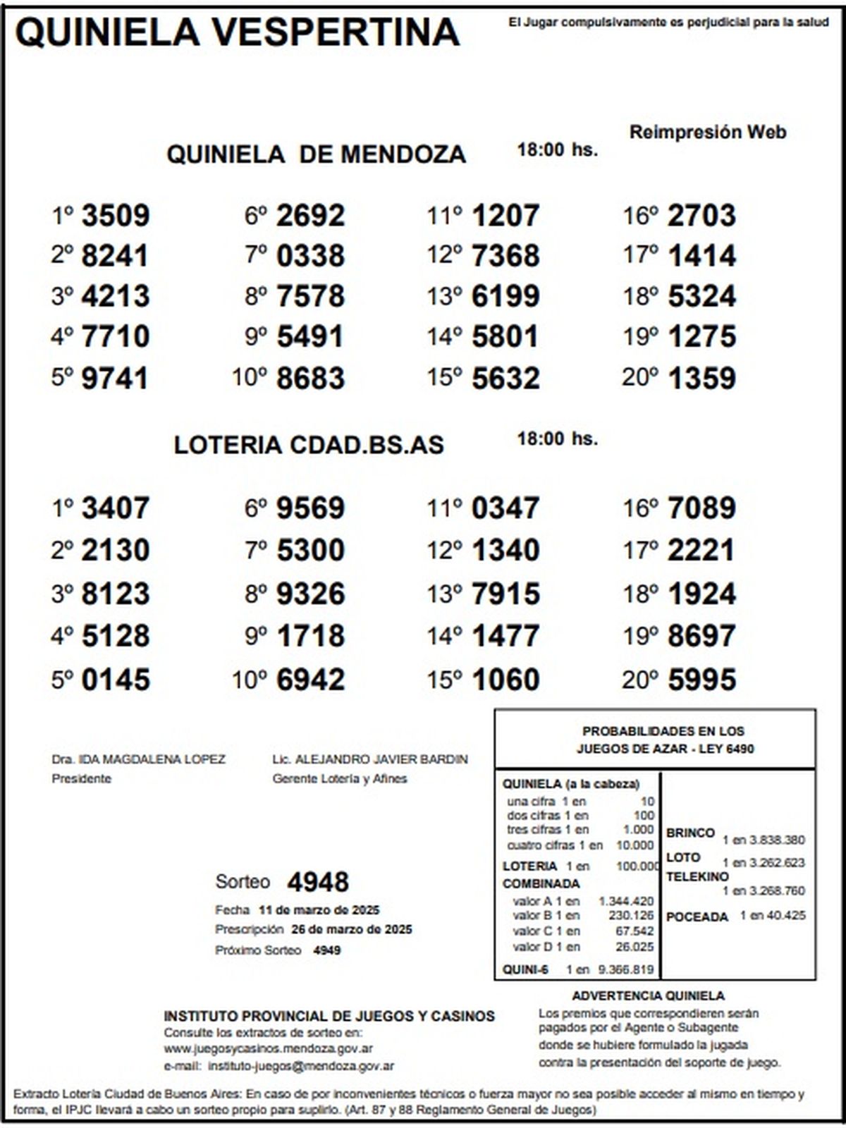 Resultados Quiniela de Mendoza: La Vespertina del 11 de marzo de 2025