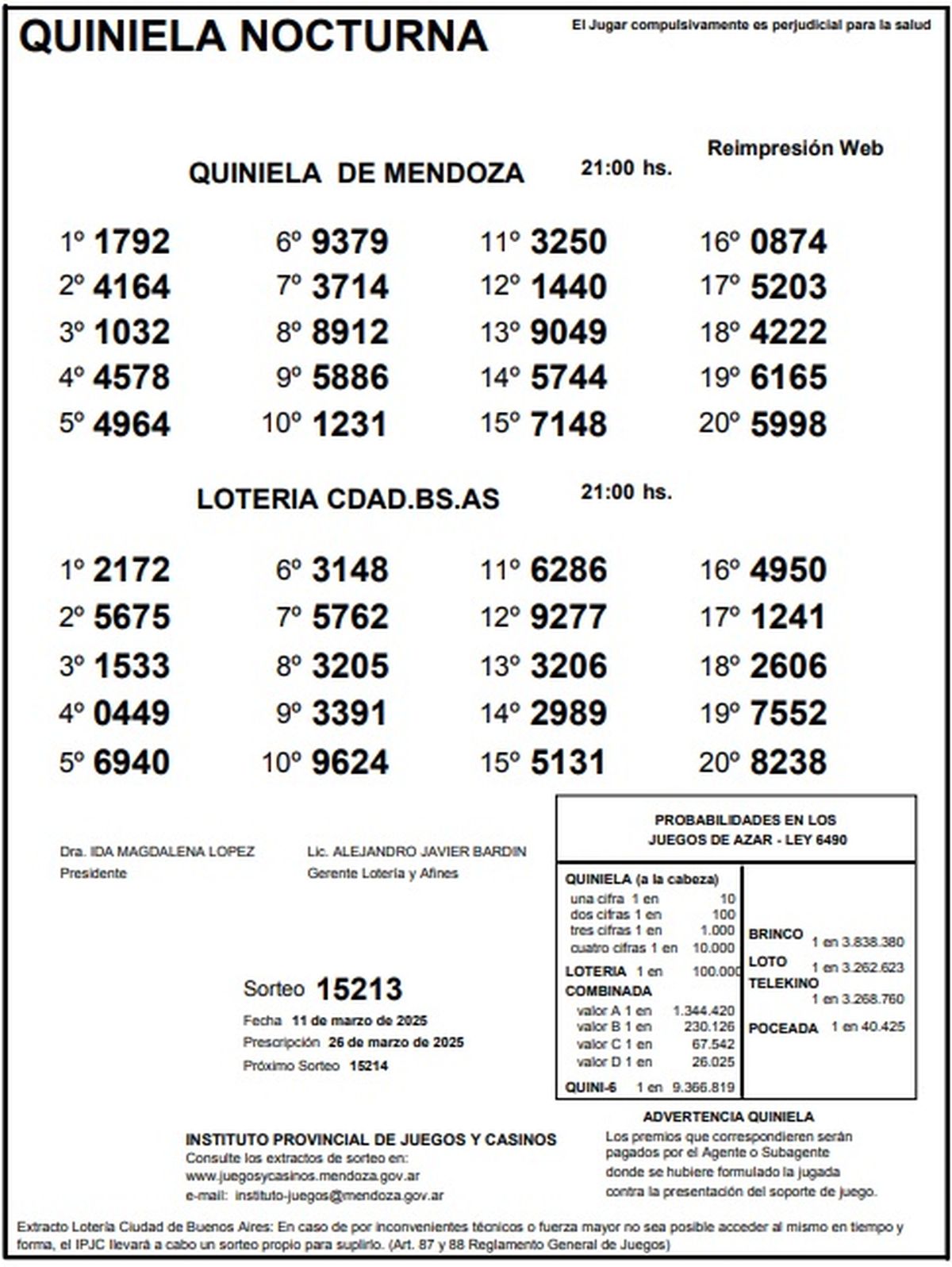 Quiniela de Mendoza: resultados de la Nocturna de hoy, 11 de marzo de 2025
