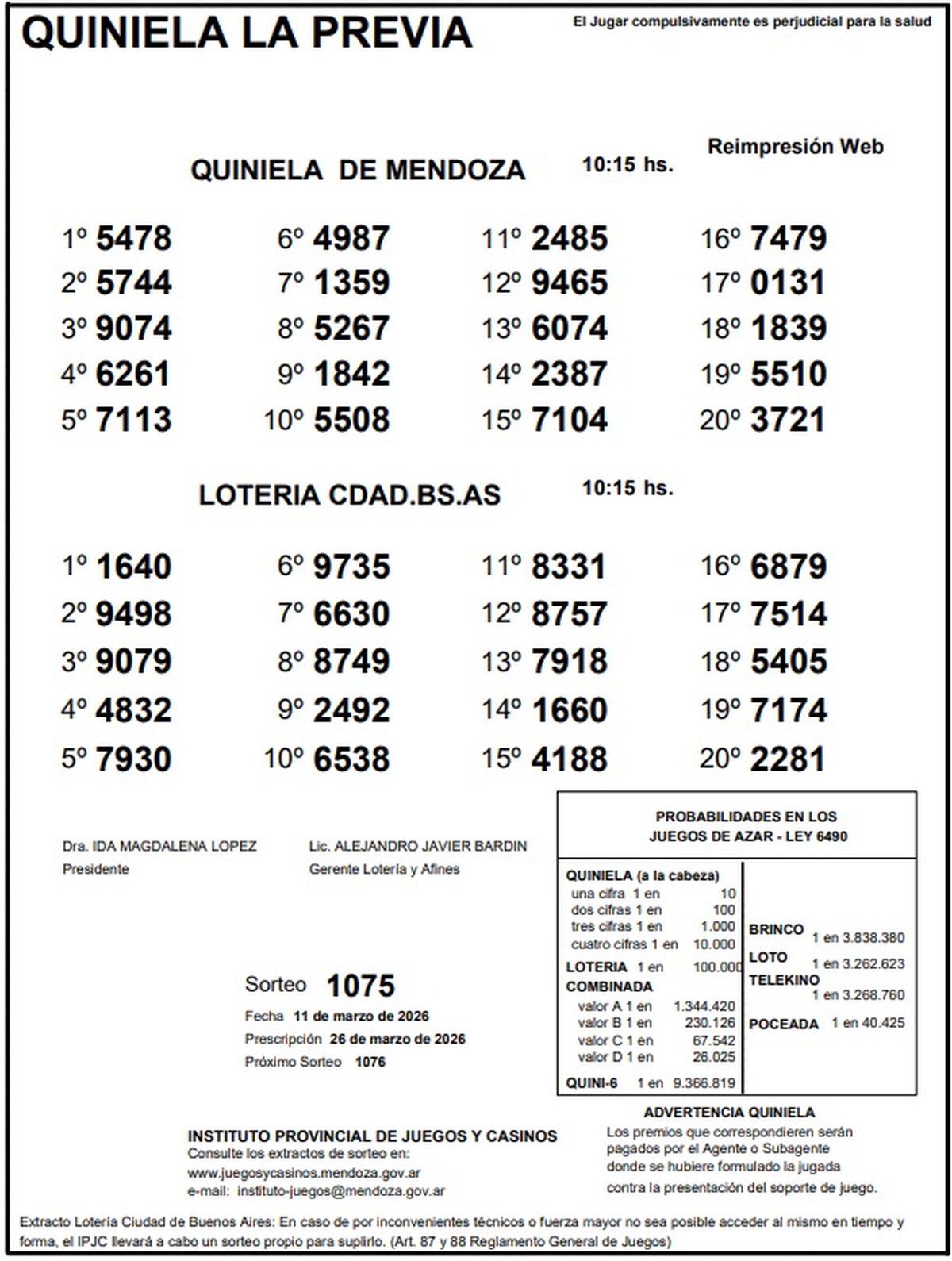 Resultados Quiniela de Mendoza: La Previa del 11 de marzo de 2026
