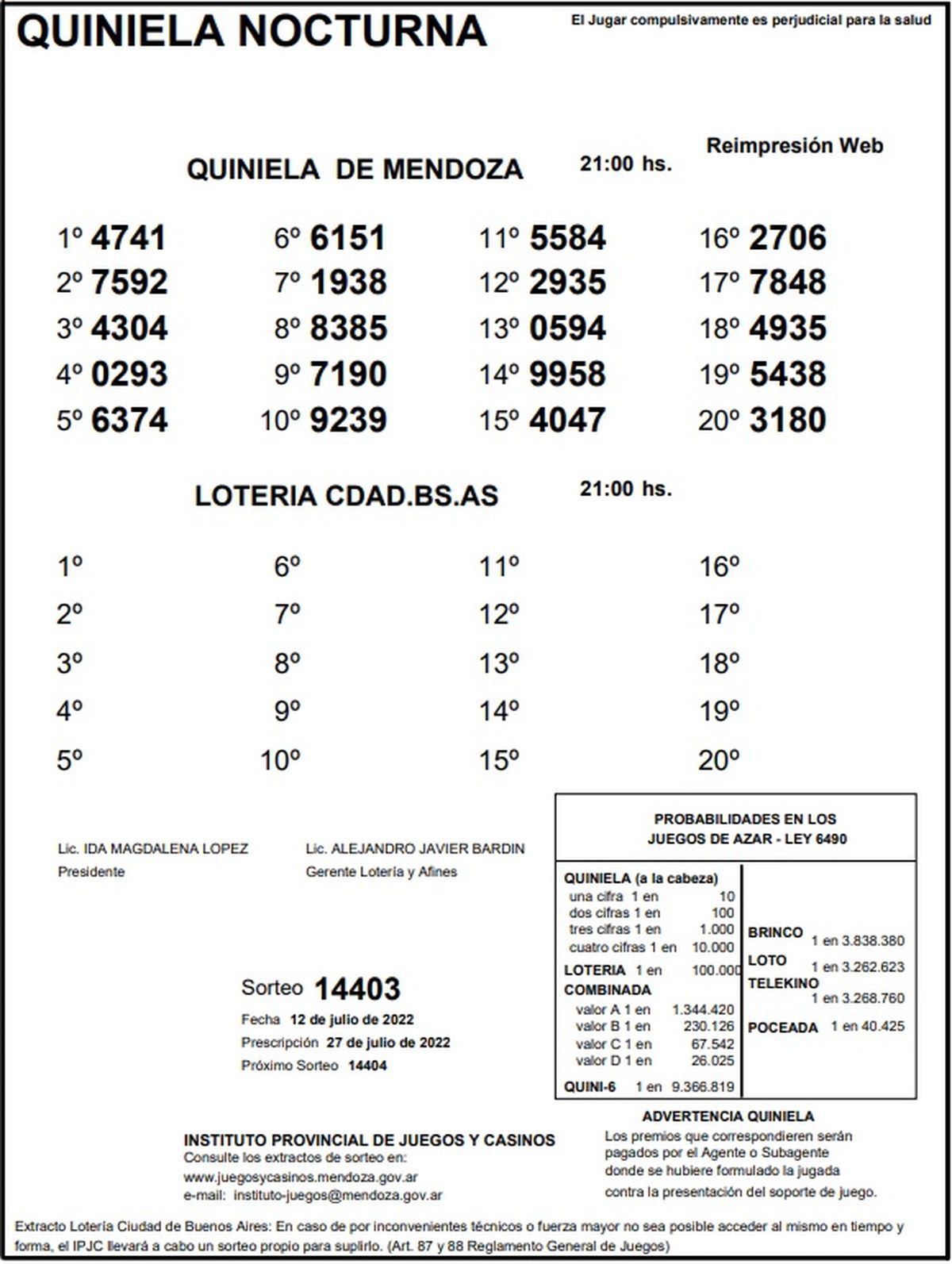 ►TE PUEDE INTERESAR: Quiniela de Mendoza: resultados de la Primera de hoy, 13 de julio de 2022