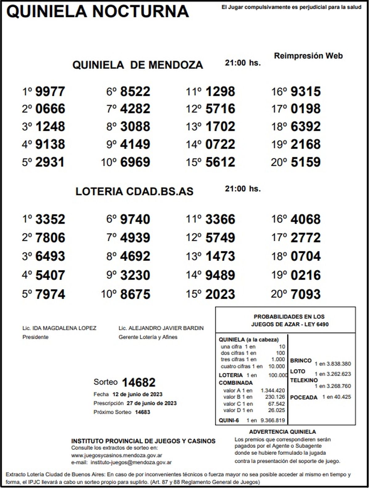 Resultados Quiniela de Mendoza: La Previa del 12 de junio 2023