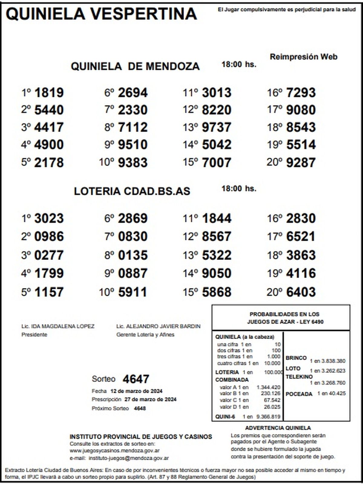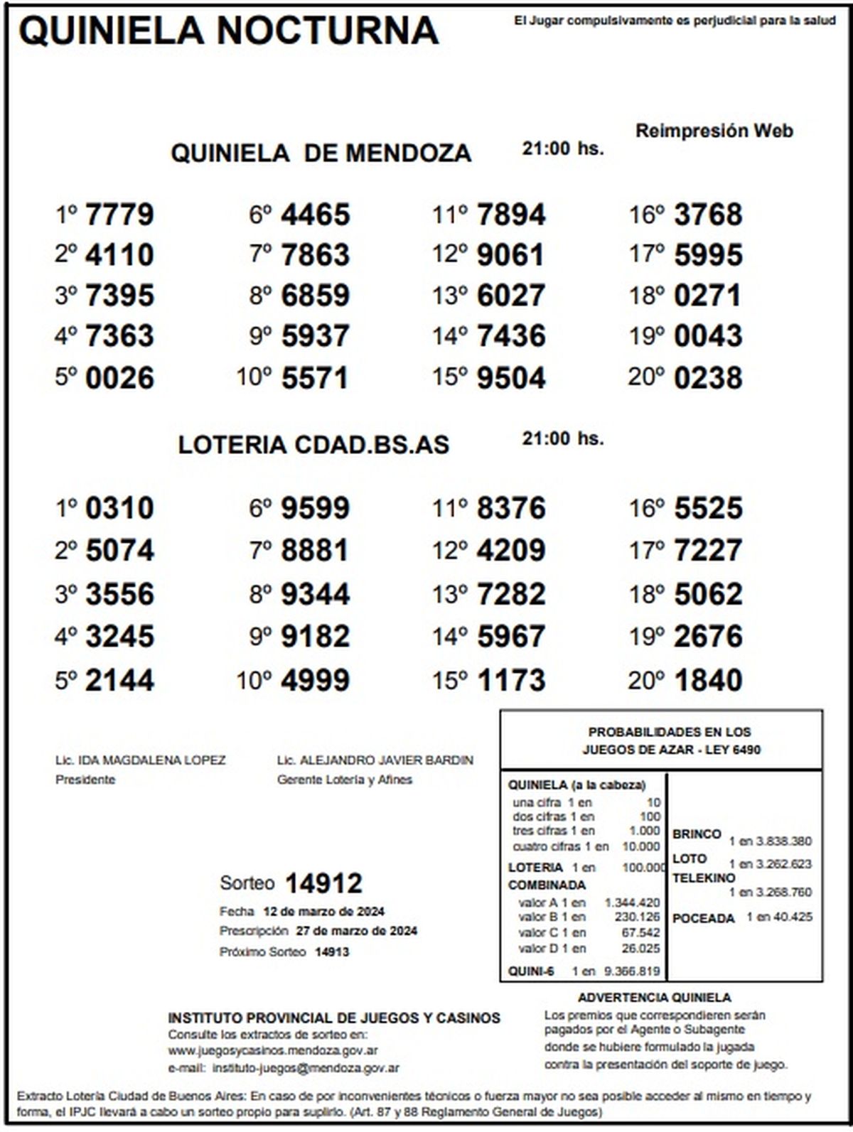 Quiniela de Mendoza: resultados de la Nocturna de hoy, 12 de marzo