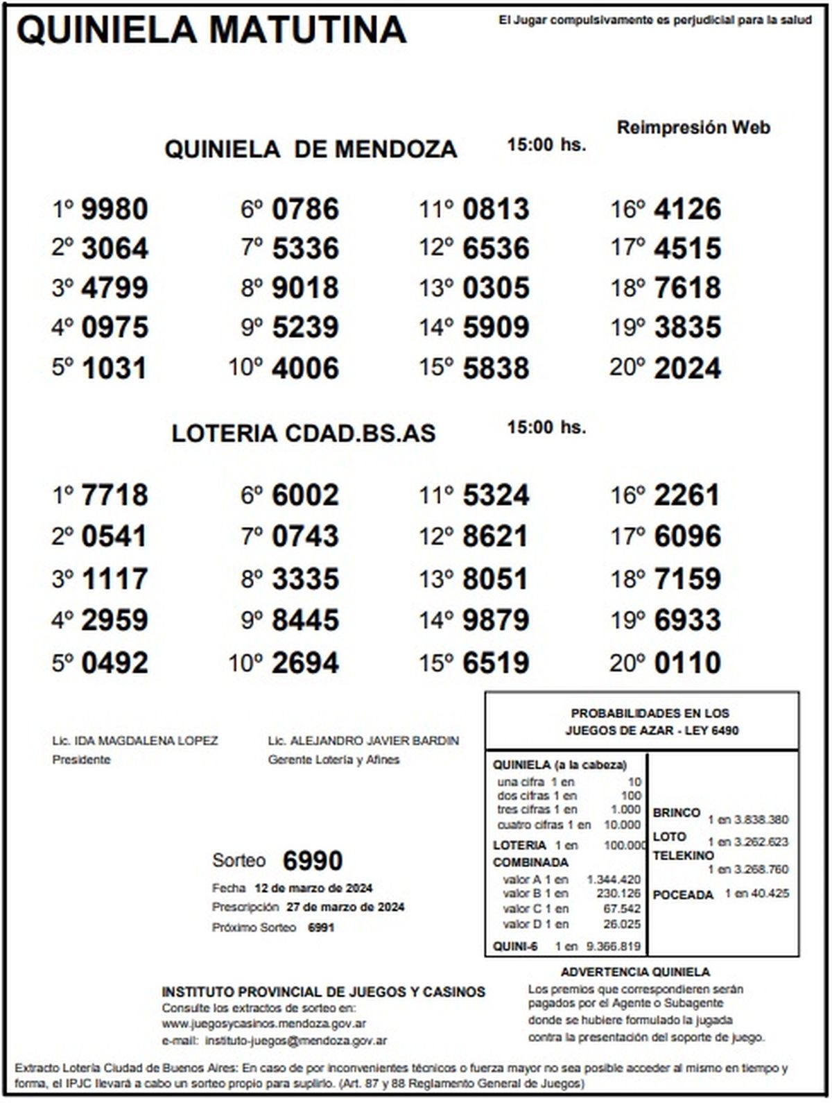 Resultados Quiniela de Mendoza: La Matutina del 12 de marzo 2024