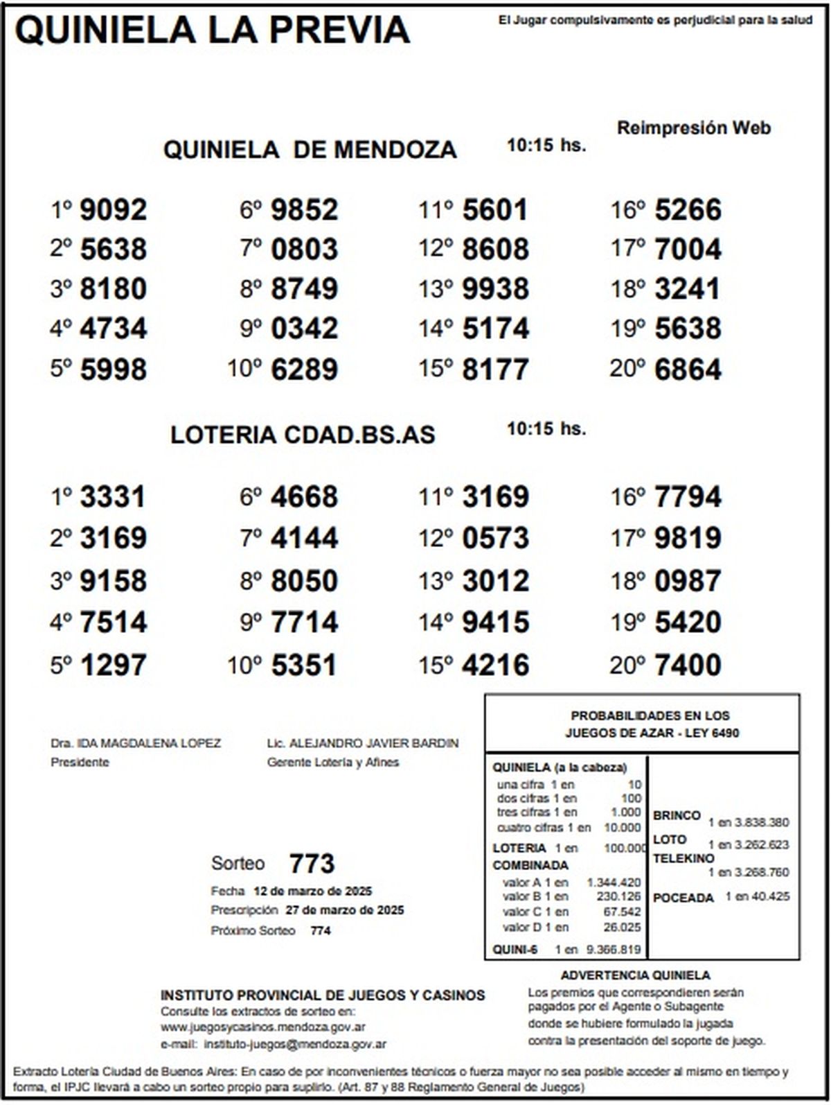 Resultados Quiniela de Mendoza: La Previa del 12 de marzo de 2025