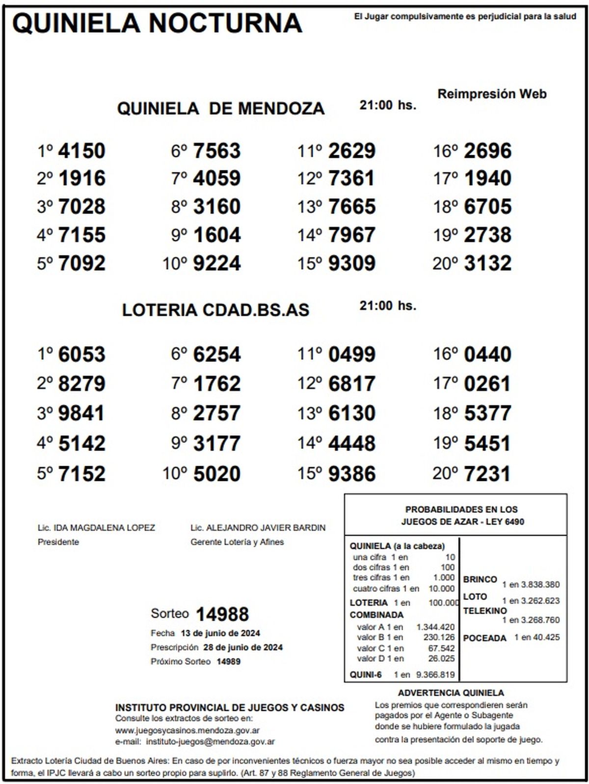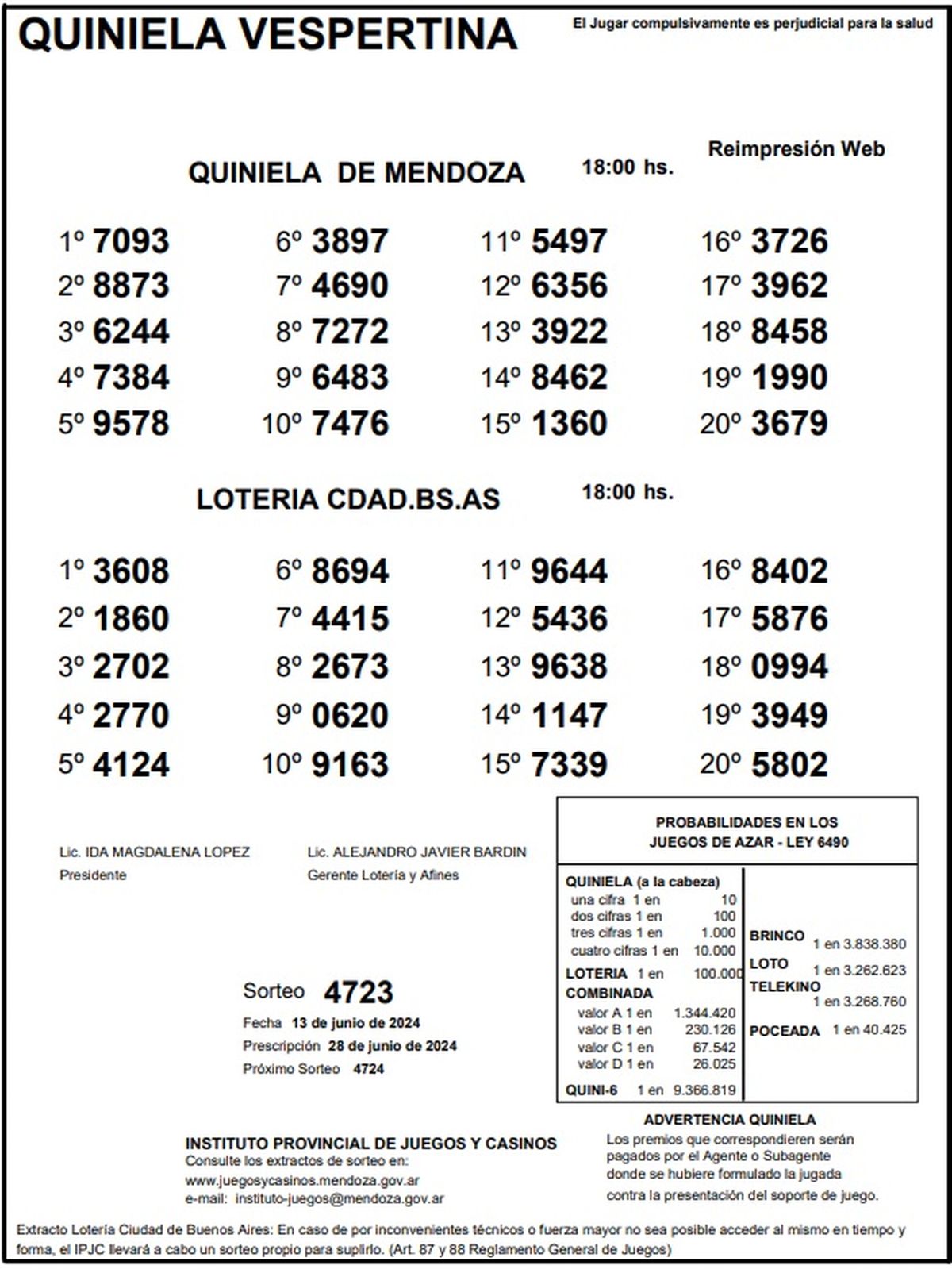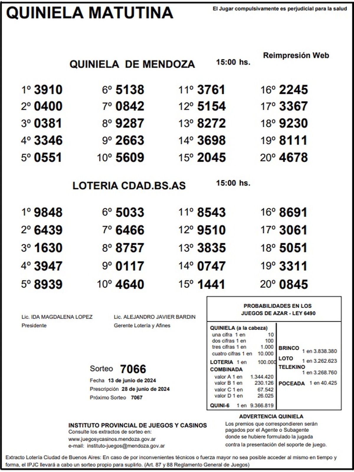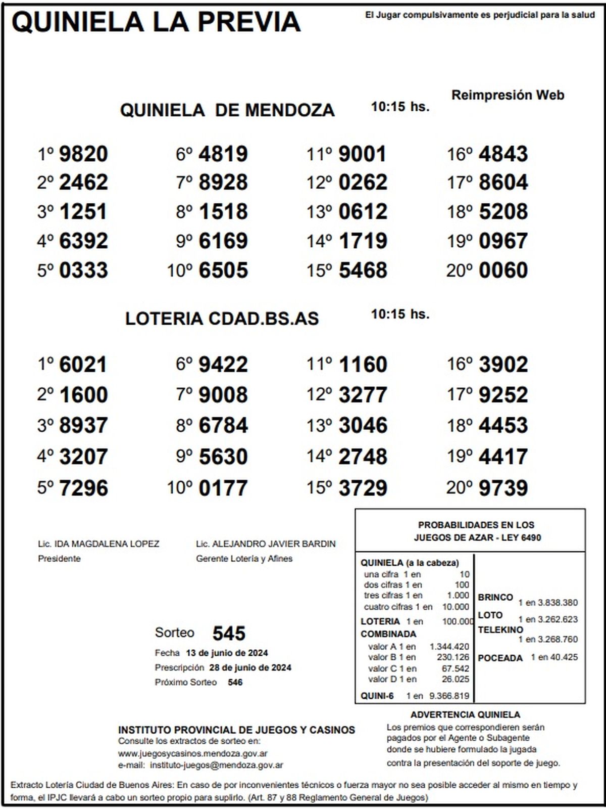 Resultados Quiniela de Mendoza: La Previa del 13 de junio 2024