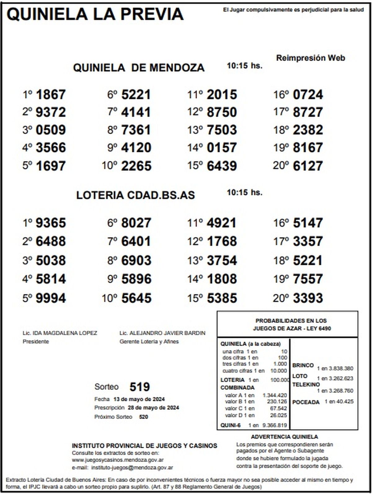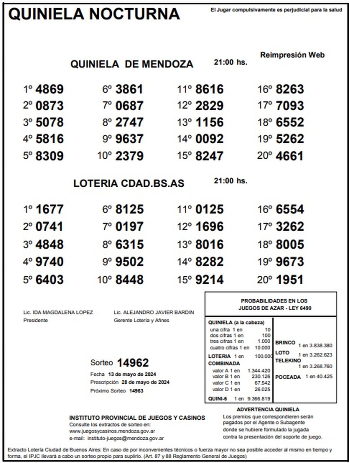 Resultados Quiniela de Mendoza: La Previa del 13 de mayo 2024
