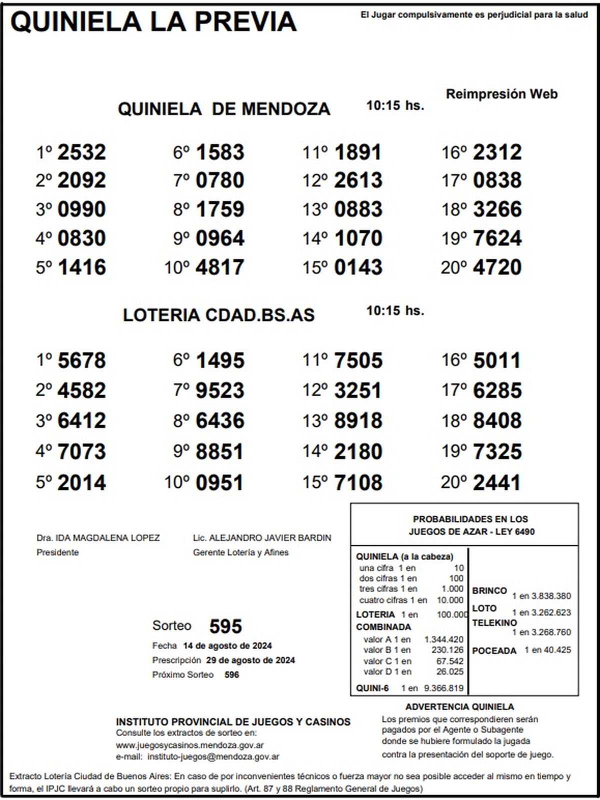 Resultados Quiniela de Mendoza: La Previa del 14 de agosto 2024