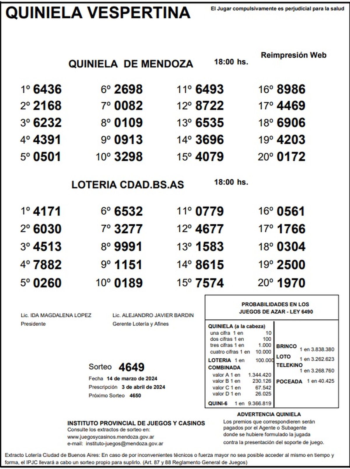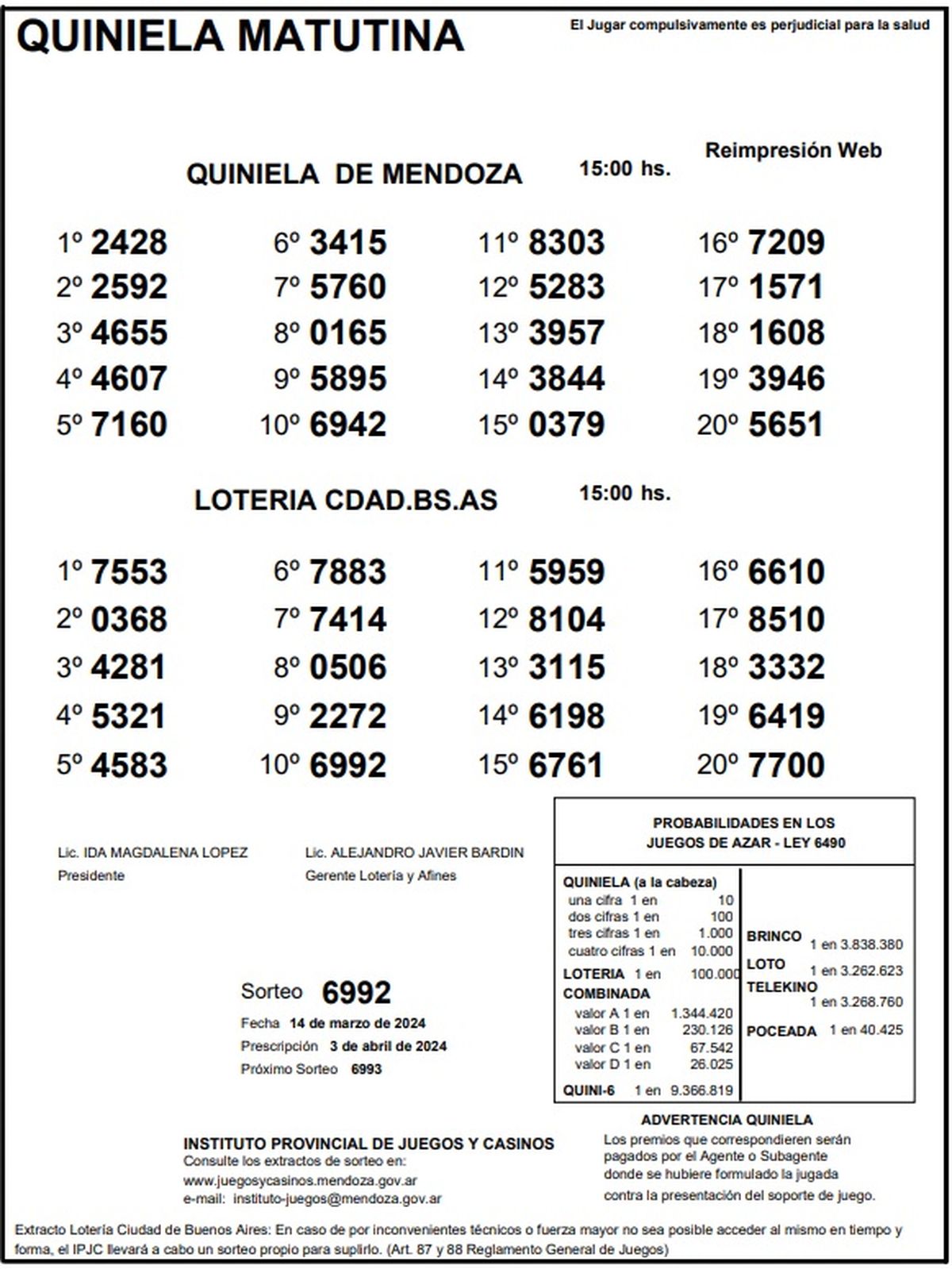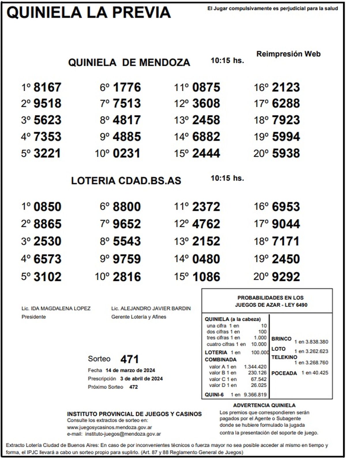 Resultados Quiniela de Mendoza: La Previa del 14 de marzo 2024
