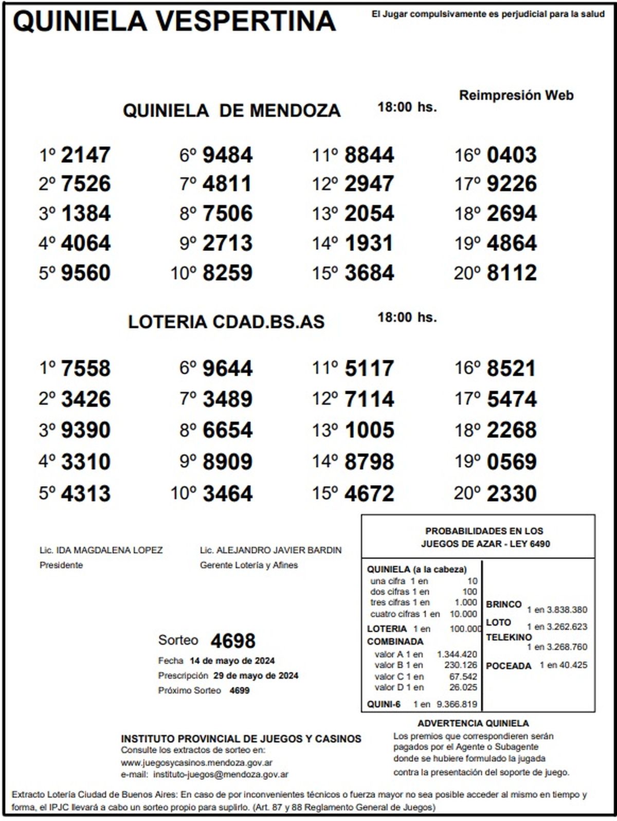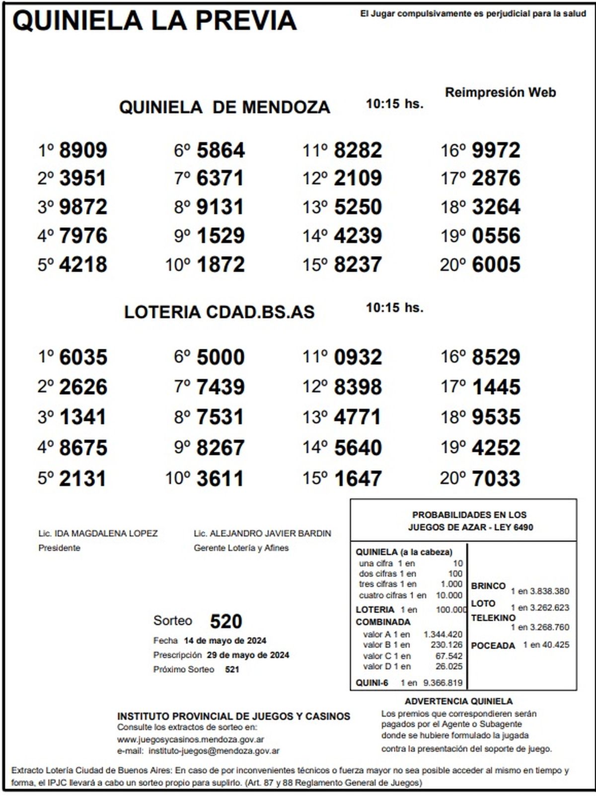 Resultados Quiniela de Mendoza: La Previa del 14 de mayo 2024