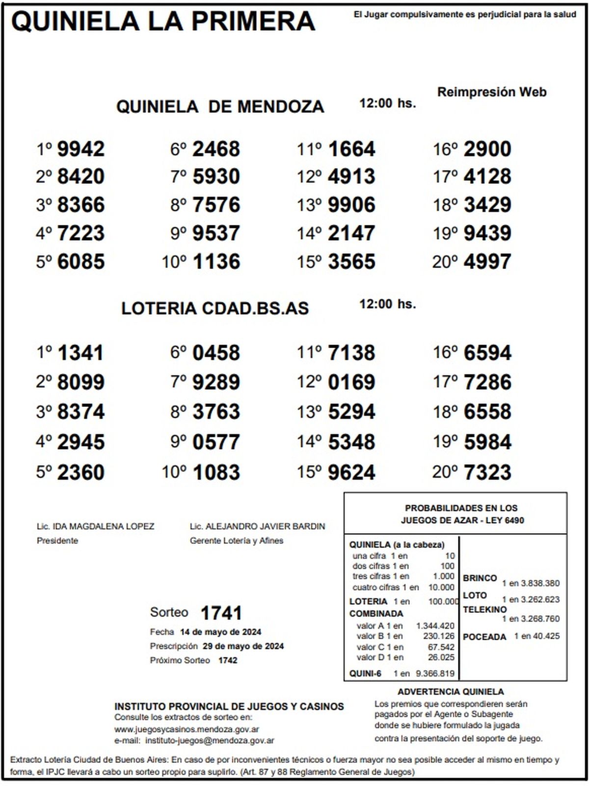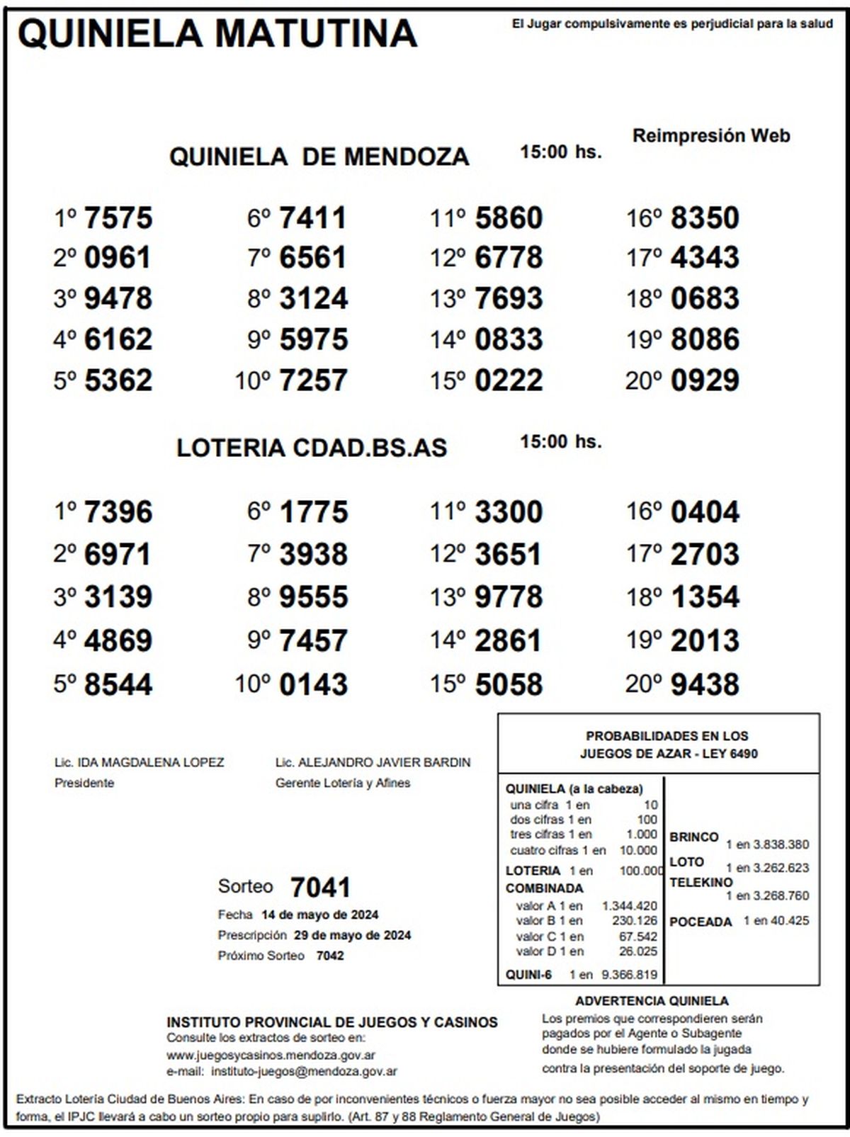Resultados Quiniela de Mendoza: La Primera del 14 de mayo 2024