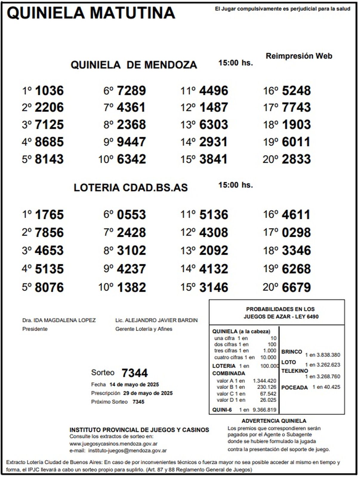 Resultados Quiniela de Mendoza: La Matutina del 14 de mayo de 2025