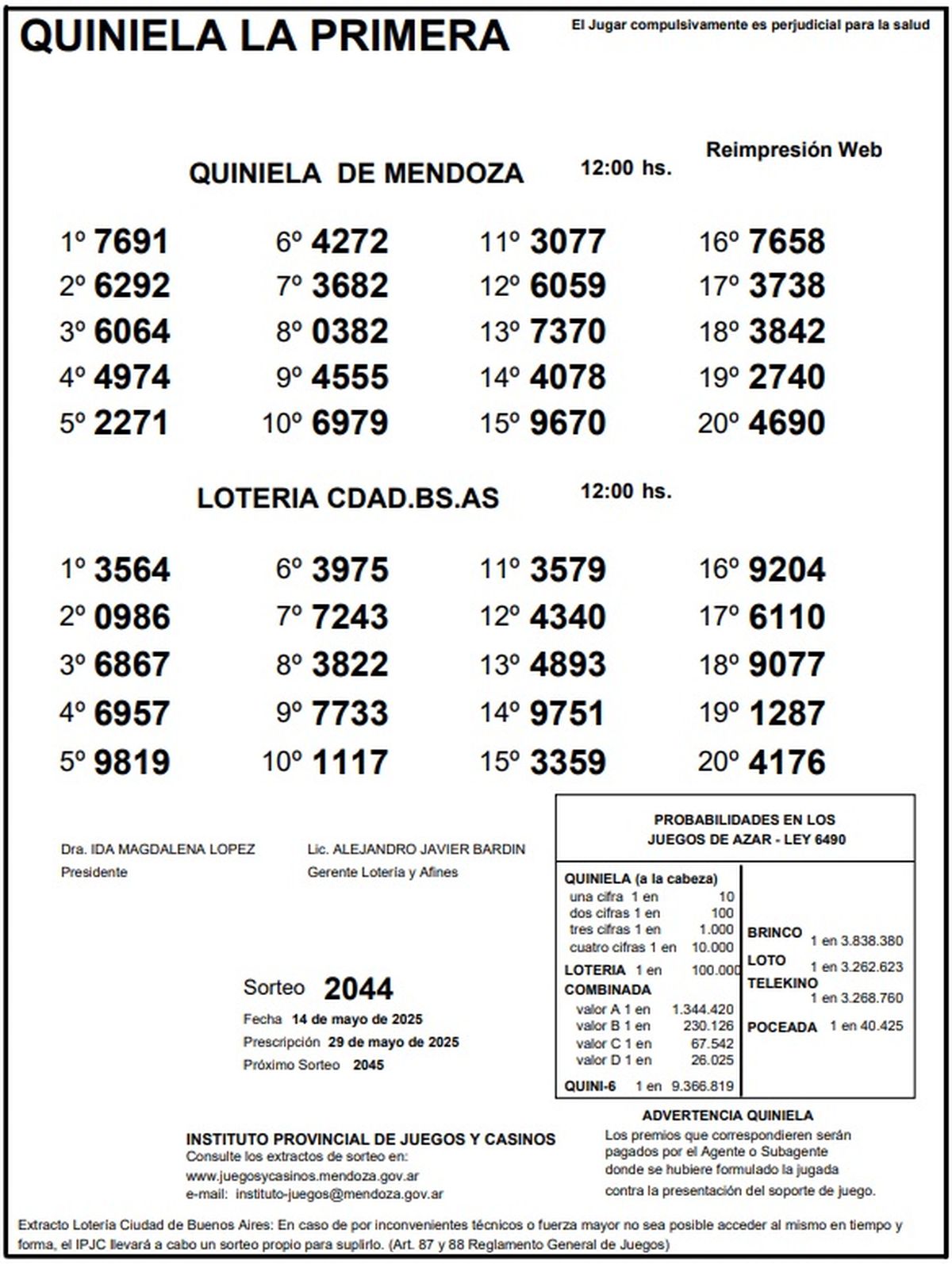 Resultados Quiniela de Mendoza: La Primera del 14 de mayo de 2025