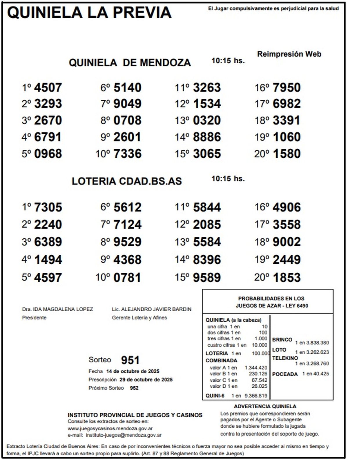 Resultados Quiniela de Mendoza: La Previa del 14 de octubre de 2025