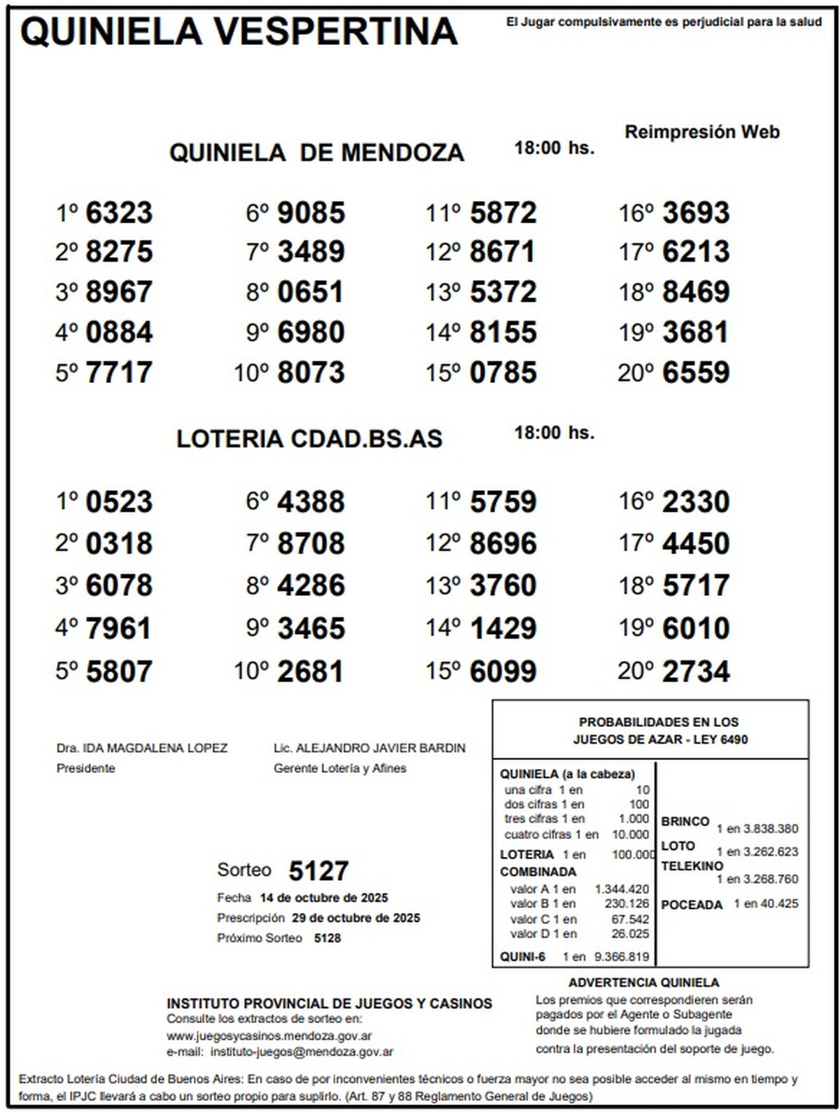 Resultados Quiniela de Mendoza: La Vespertina del 14 de octubre de 2025