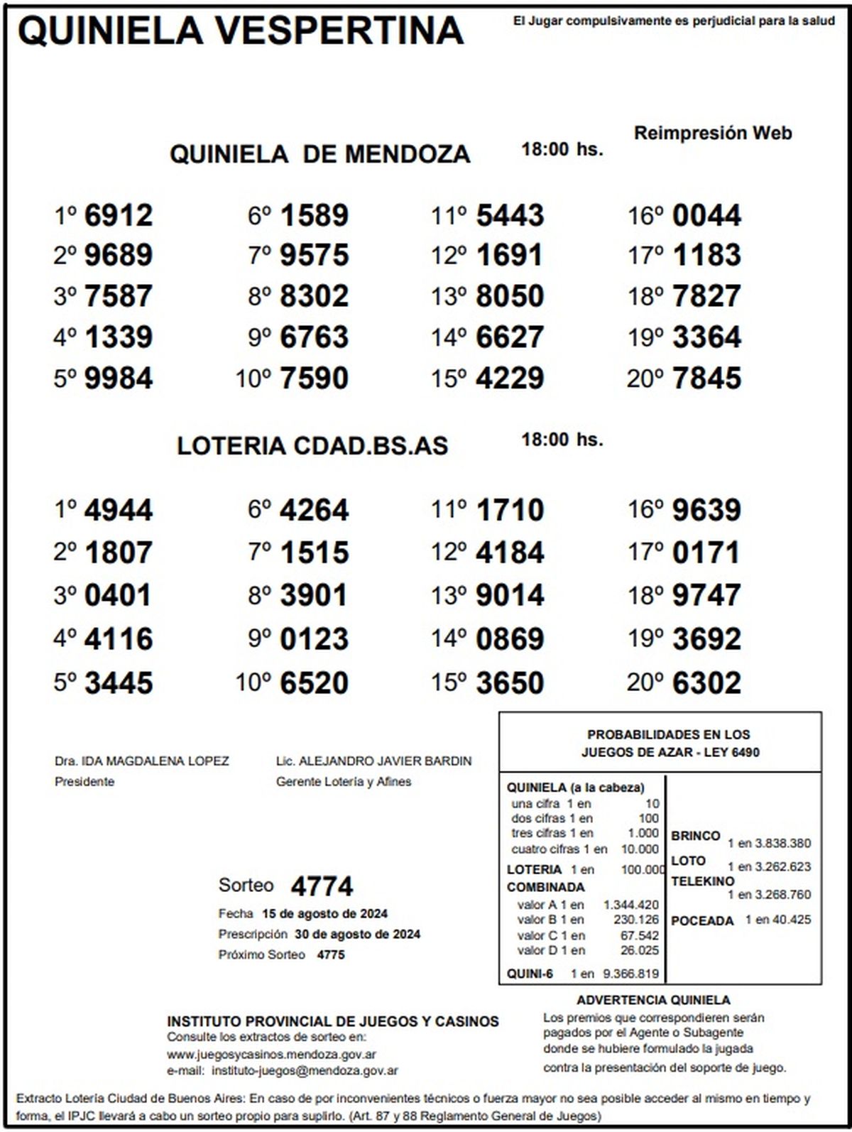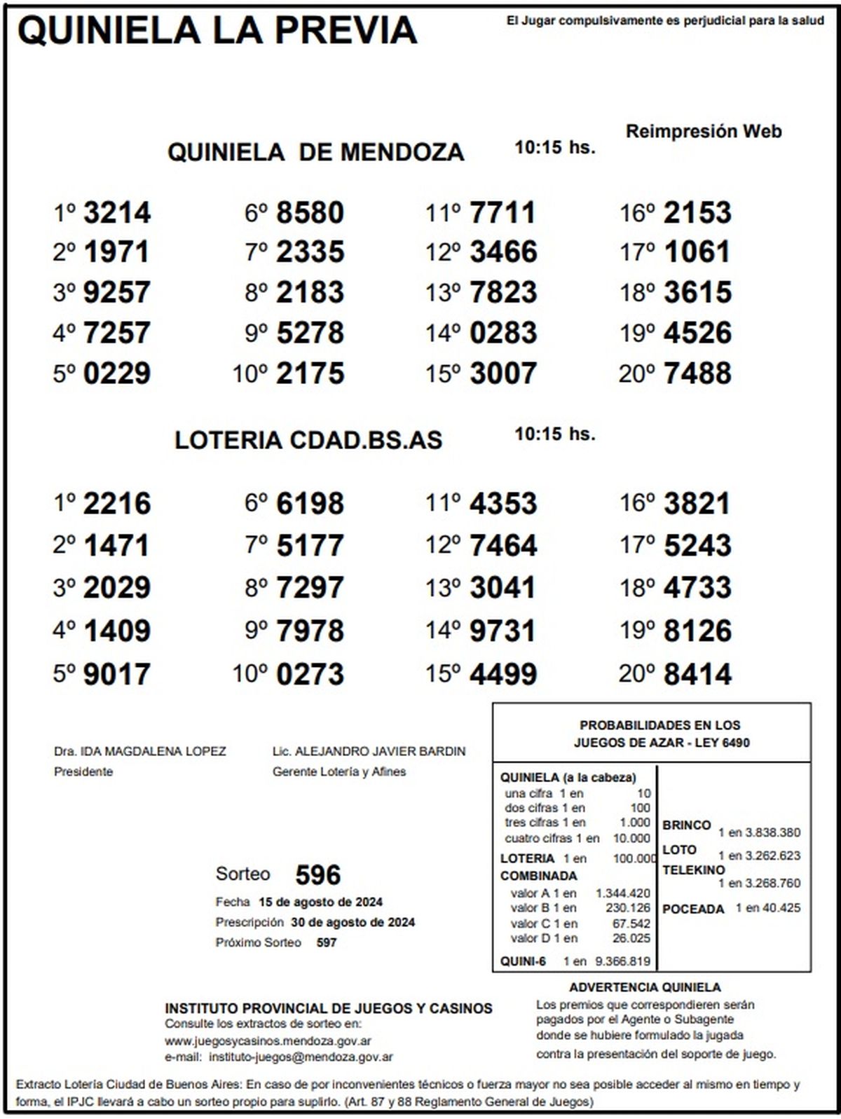 Resultados Quiniela de Mendoza: La Previa del 15 de agosto 2024