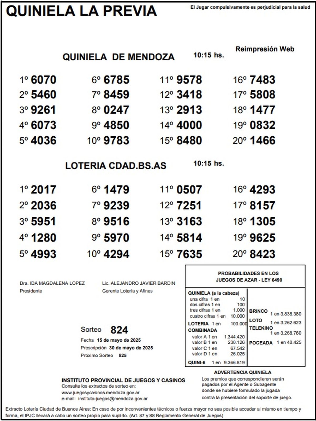 Resultados Quiniela de Mendoza: La Previa del 15 de mayo de 2025