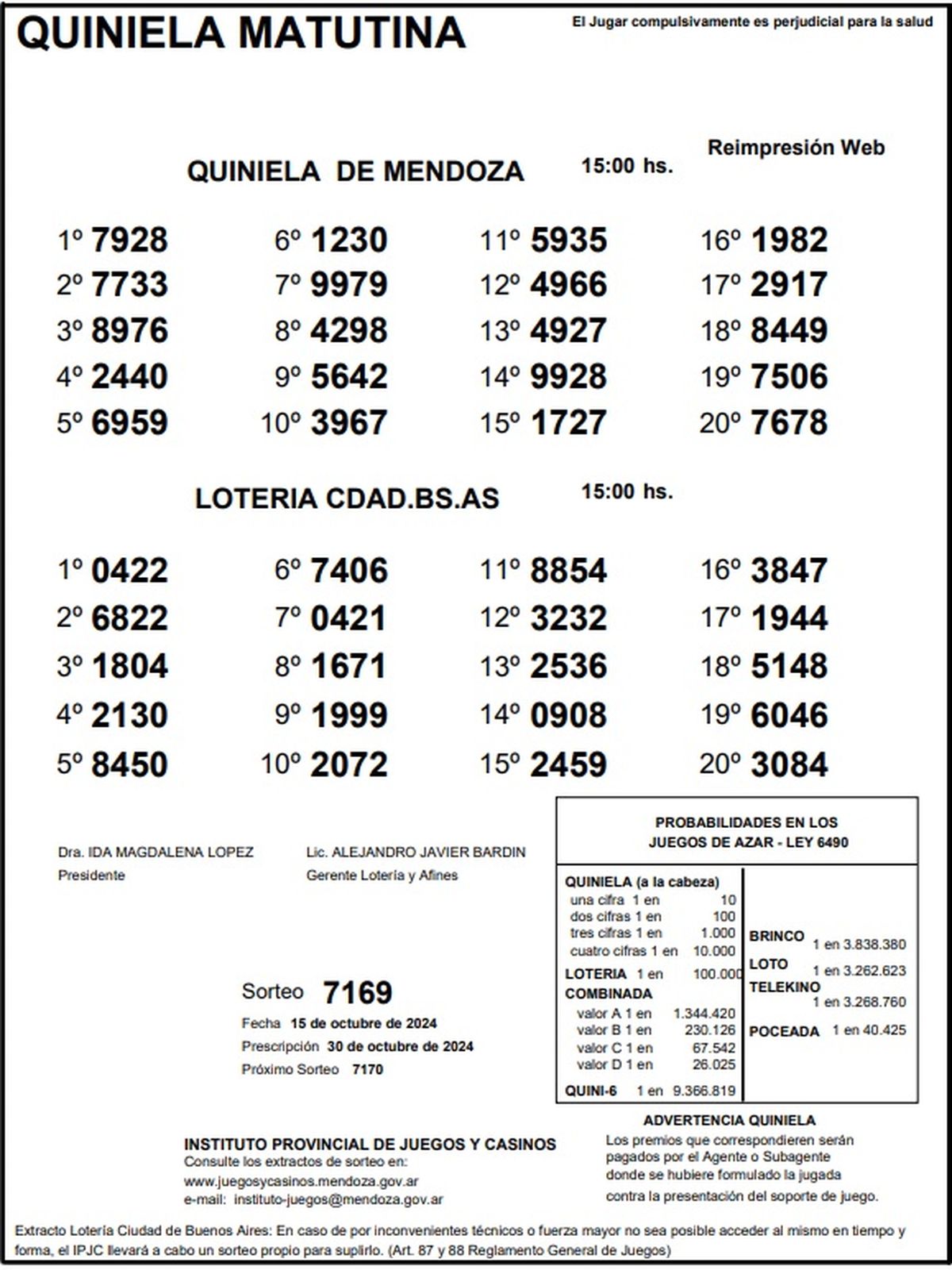 Resultados Quiniela de Mendoza: La Matutina del 15 de octubre 2024