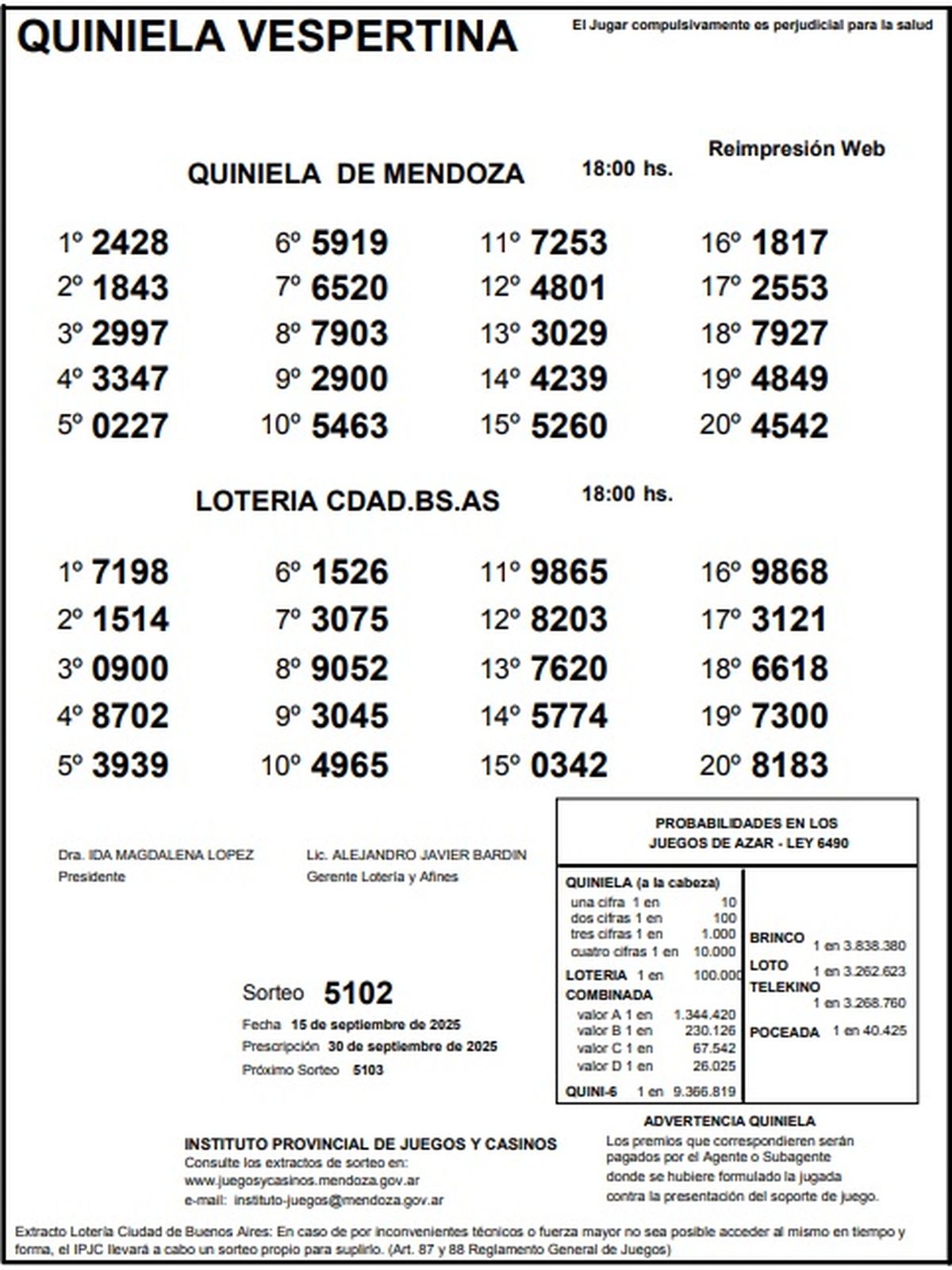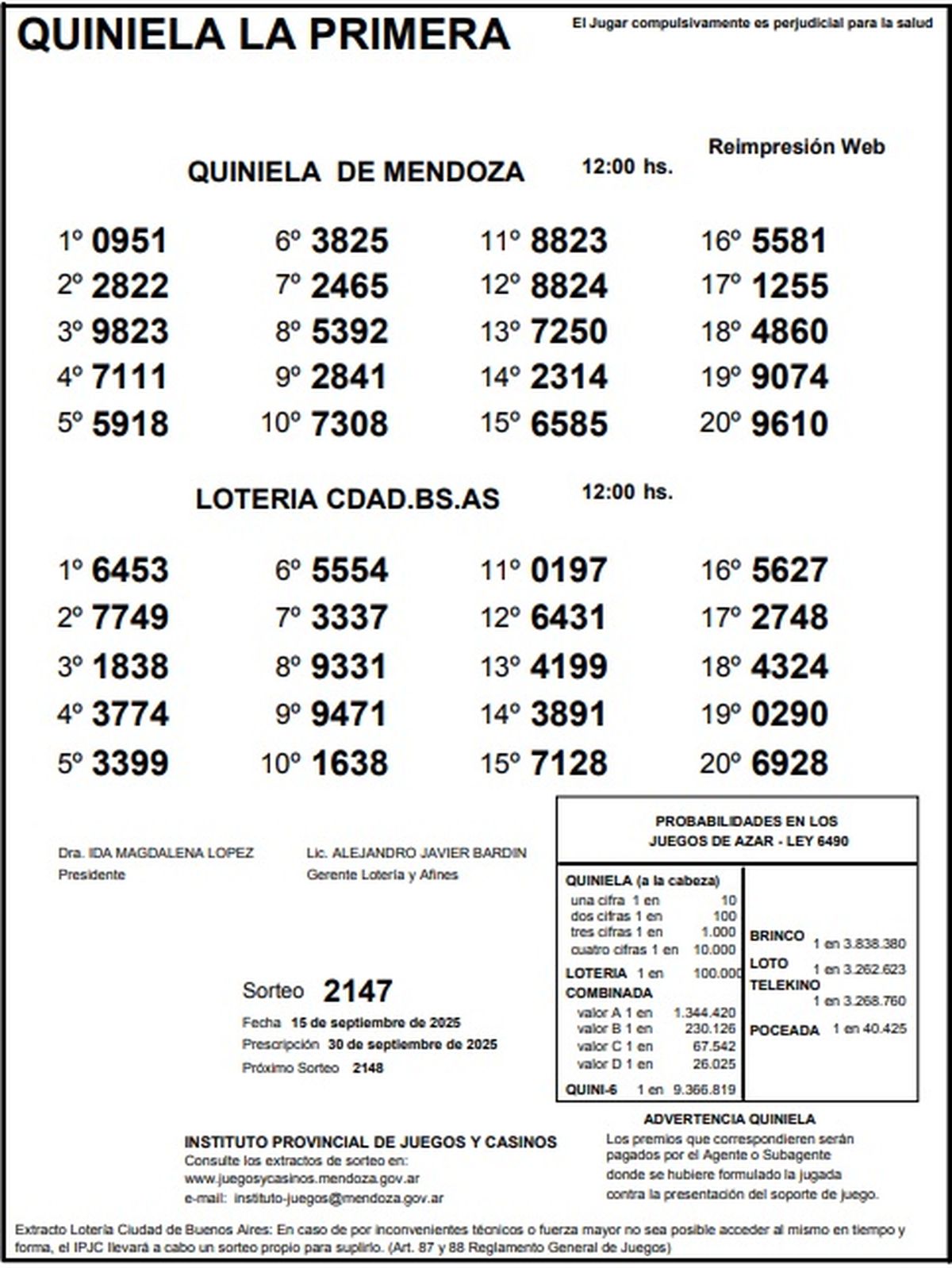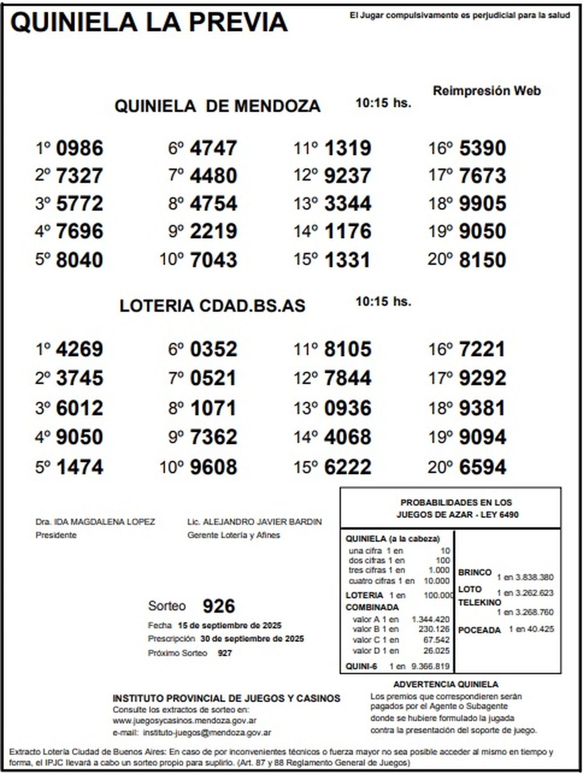Resultados Quiniela de Mendoza: La Previa del 15 de septiembre de 2025