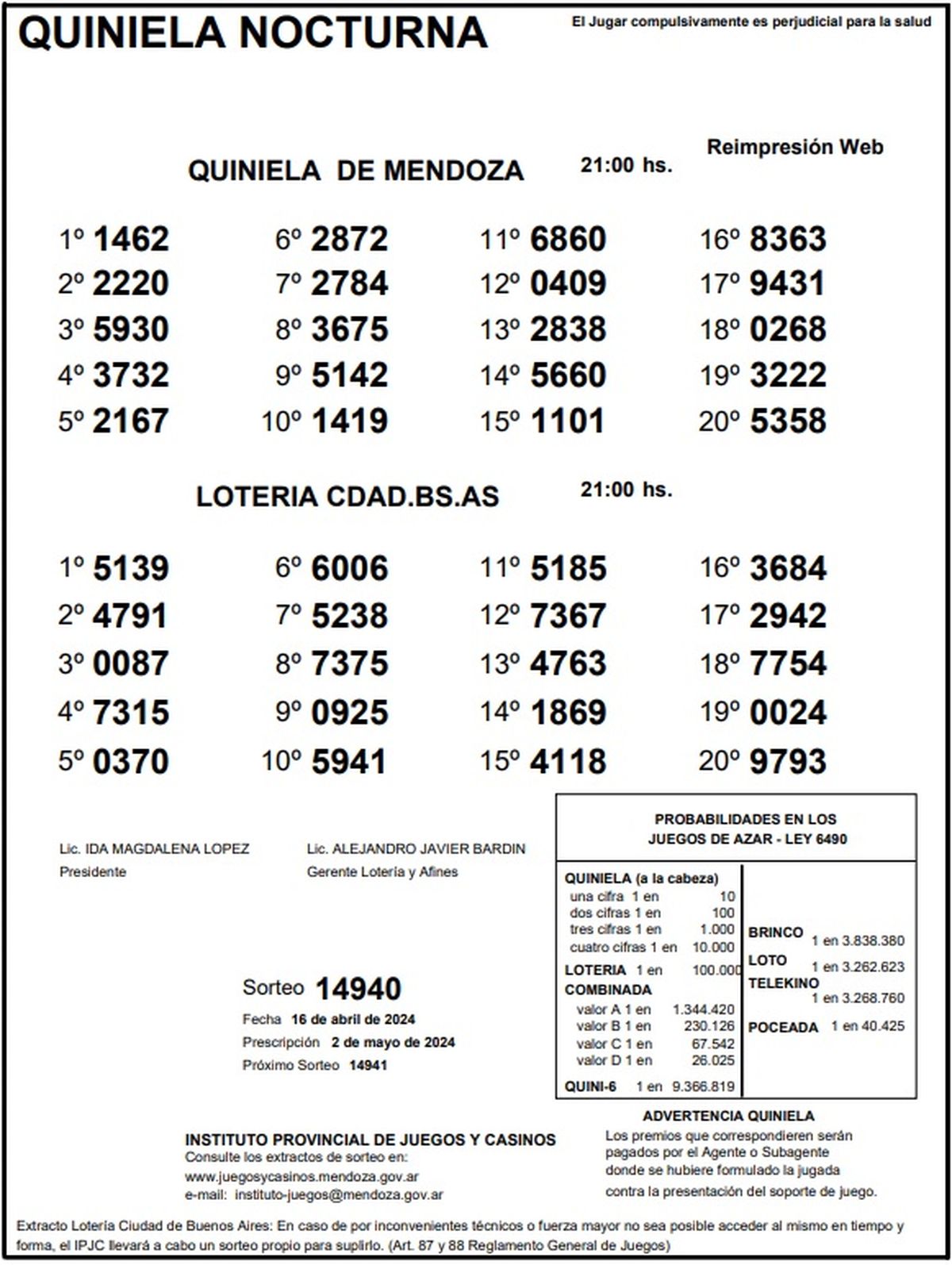 Quiniela de Mendoza: resultados de la Nocturna de hoy, 16 de abril