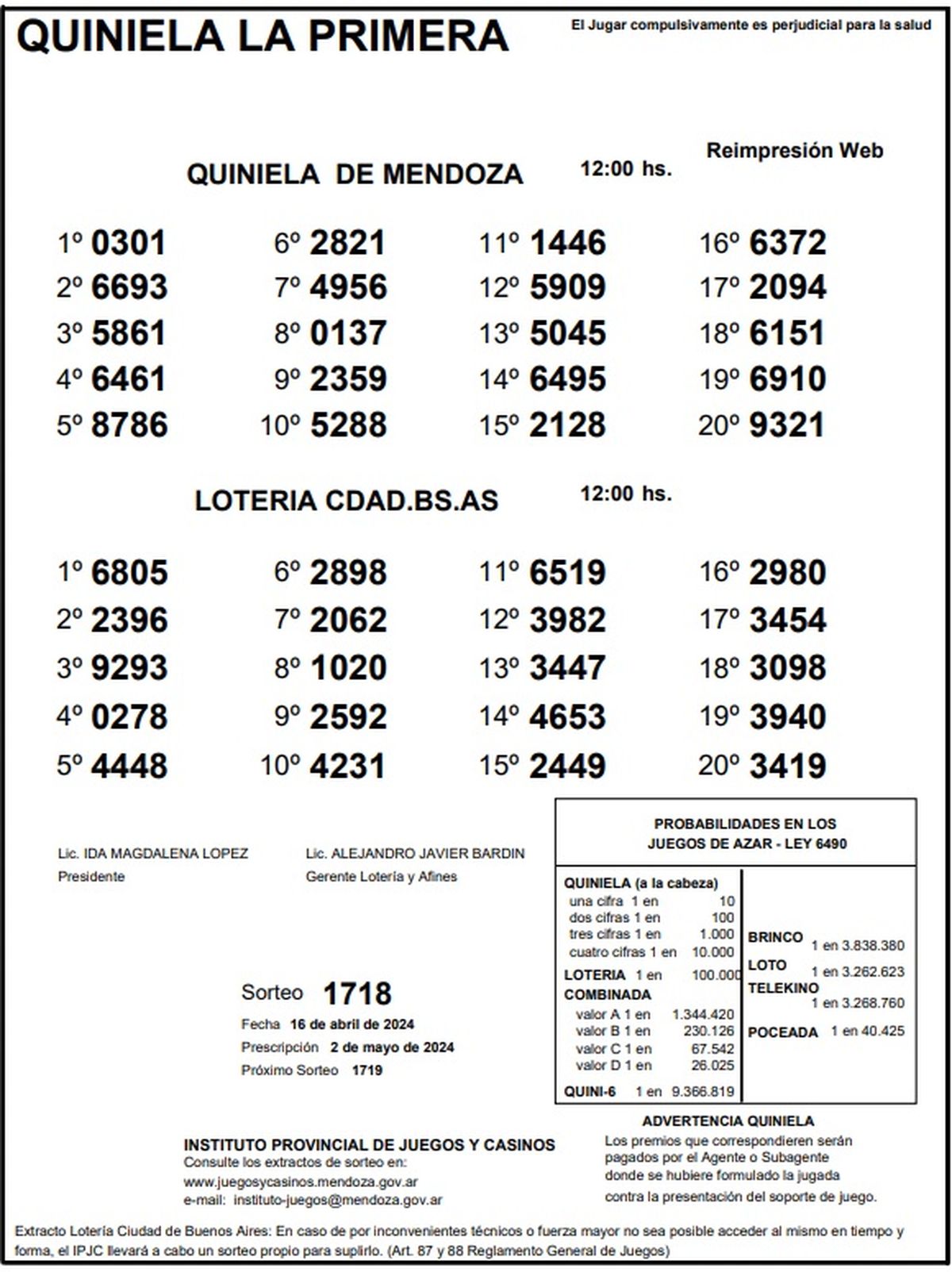 Resultados Quiniela de Mendoza: La Primera del 16 de abril 2024