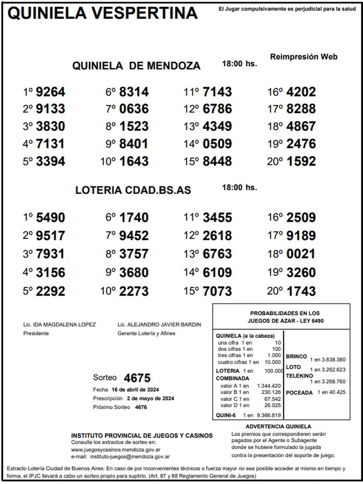 Resultados Quiniela de Mendoza: La Vespertina del 16 de abril 2024