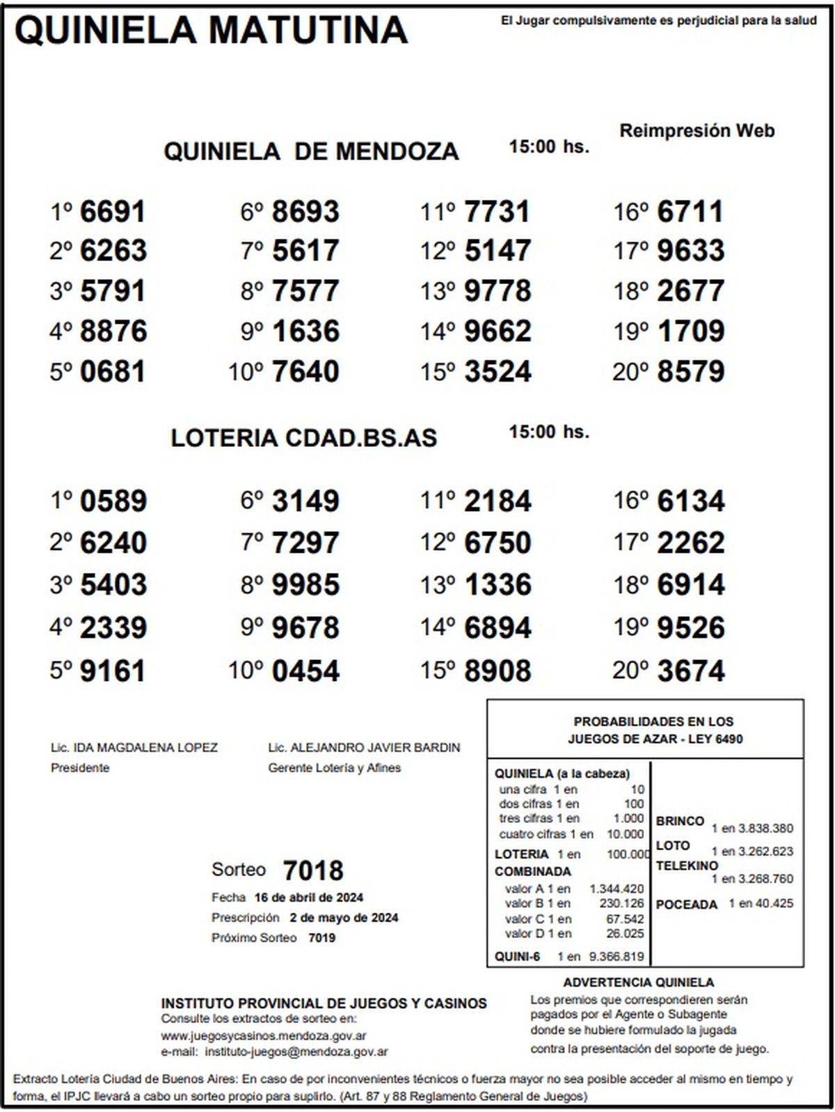 Resultados Quiniela de Mendoza: La Matutina del 16 de abril 2024