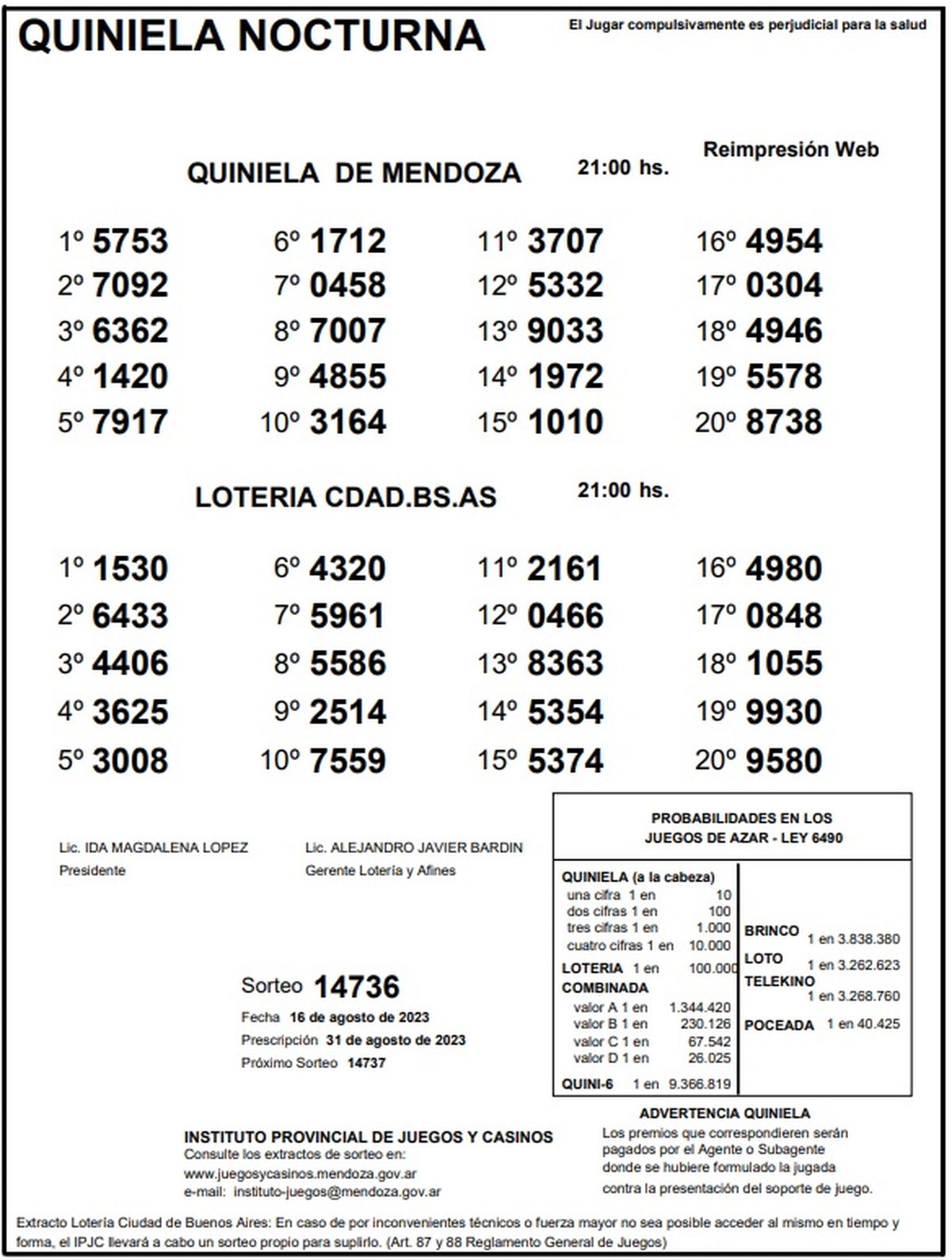Quiniela de Mendoza: resultados de la Nocturna de hoy, 16 de agosto de 2023