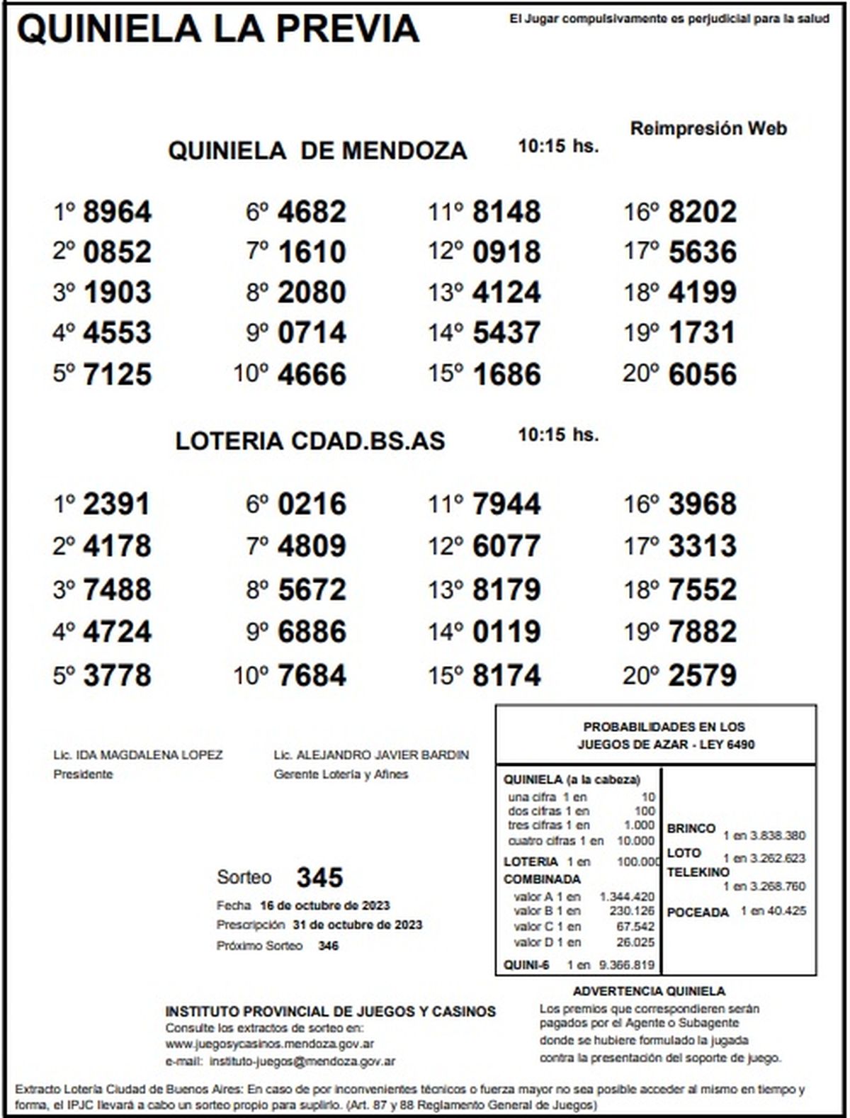 Resultados Quiniela de Mendoza: La Previa del 16 de octubre 2023
