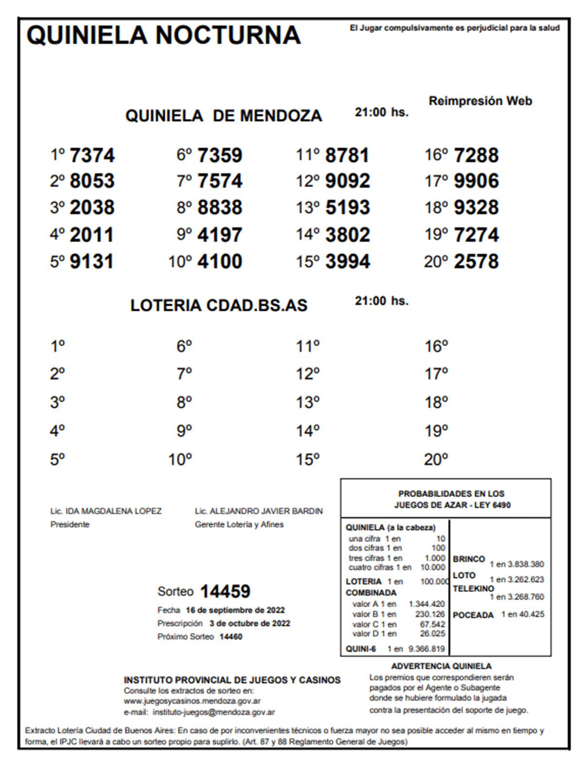 Quiniela de Mendoza: resultados de la Nocturna de hoy, 16 de septiembre de 2022