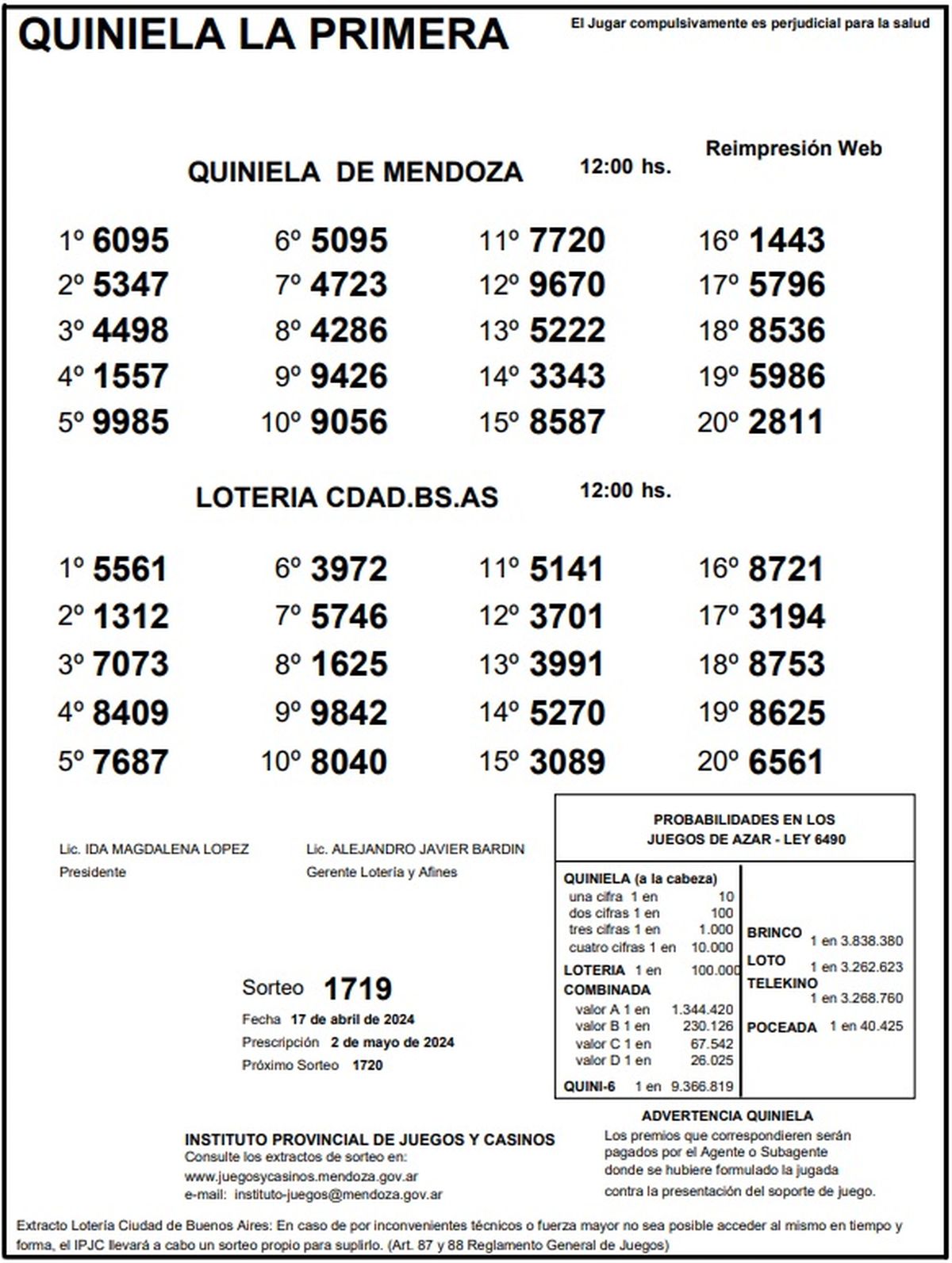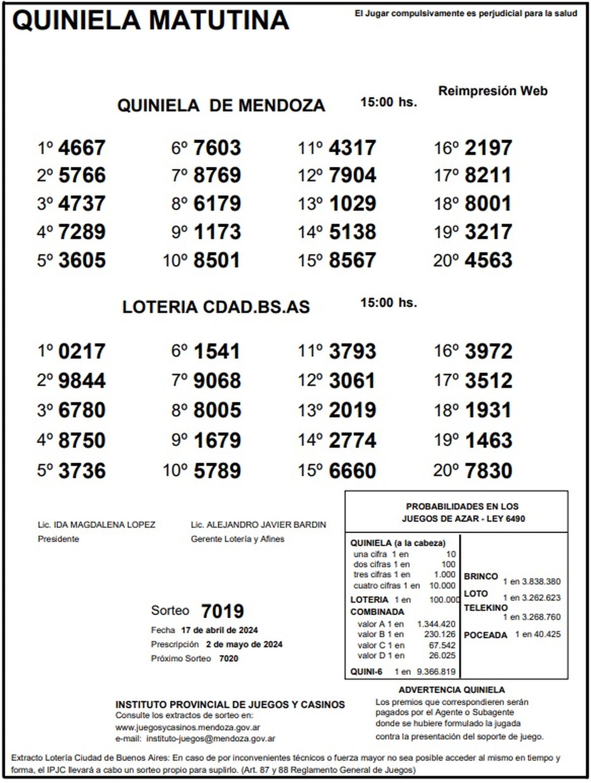 Resultados Quiniela de Mendoza: La Primera del 17 de abril 2024