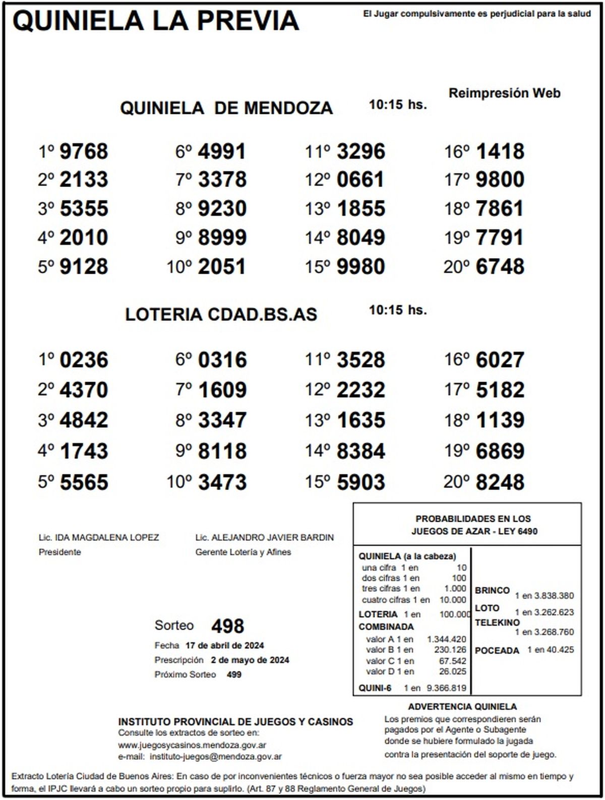 Resultados Quiniela de Mendoza: La Previa del 17 de abril 2024