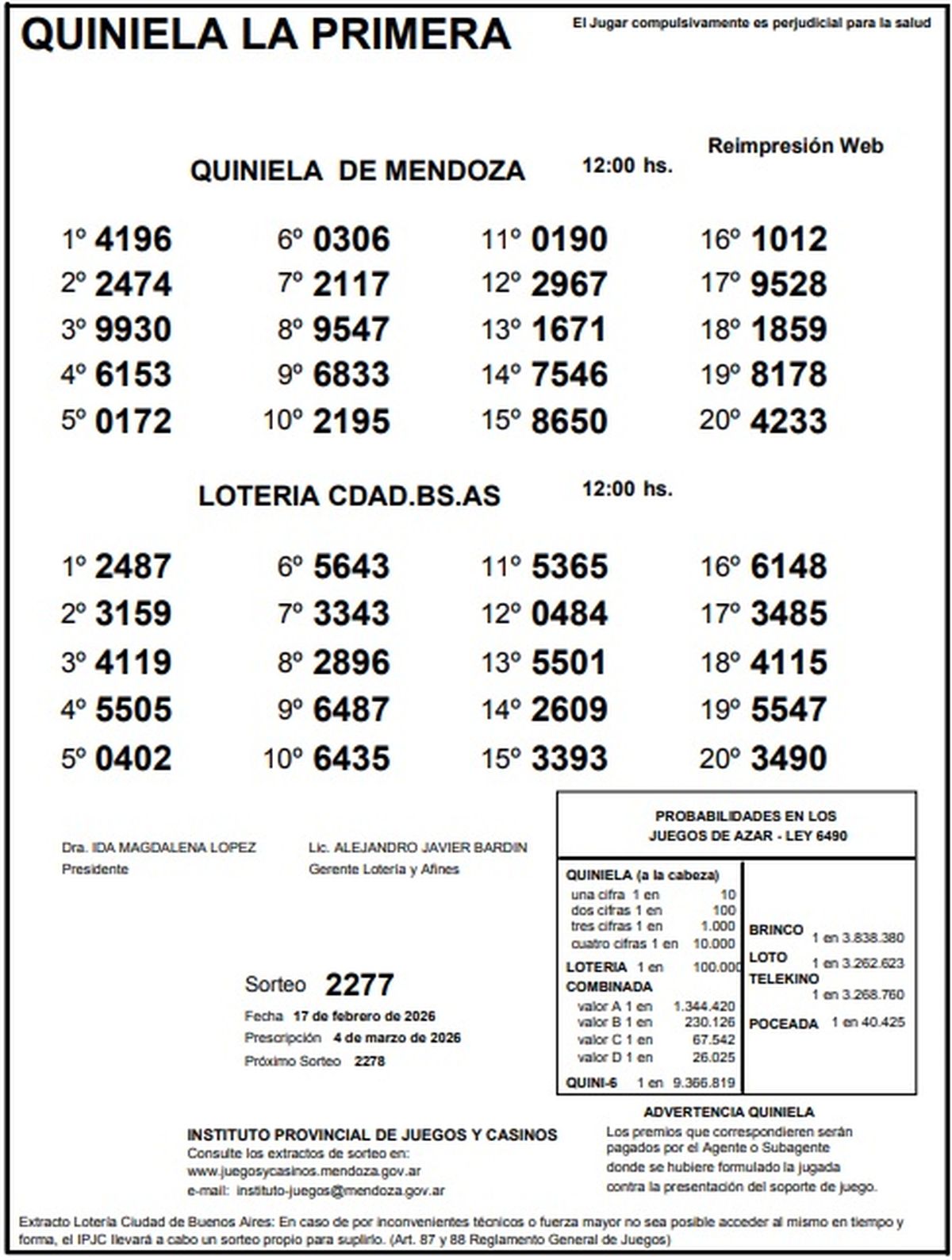 Resultados Quiniela de Mendoza: La Previa del 17 de febrero de 2026