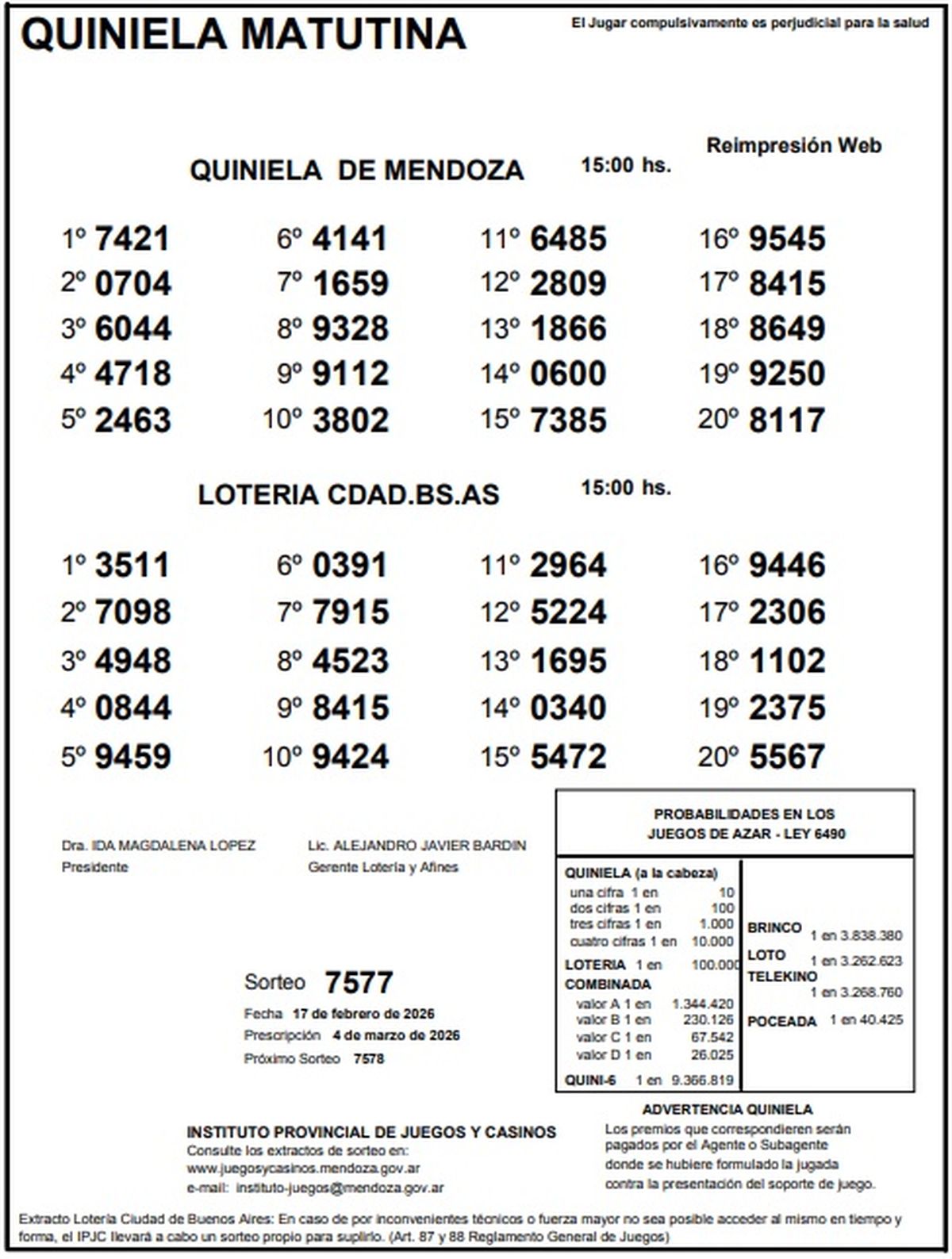 Resultados Quiniela de Mendoza: La Matutina del 17 de febrero de 2026