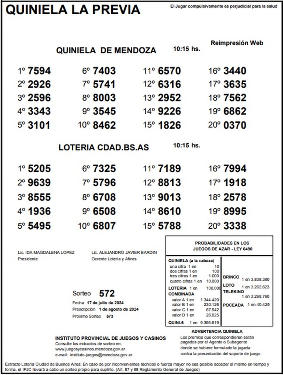 Resultados Quiniela de Mendoza: La Previa del 17 de julio 2024