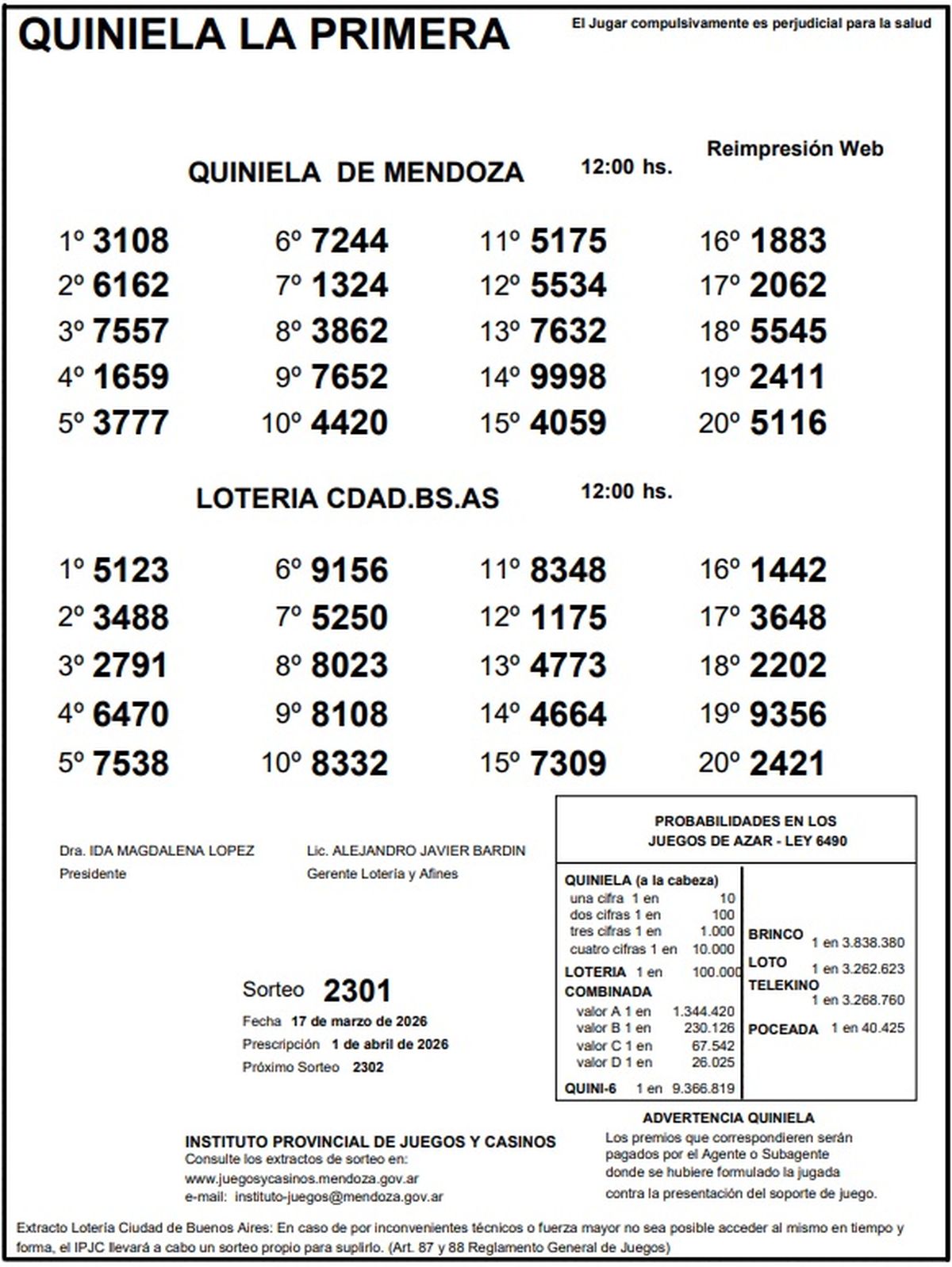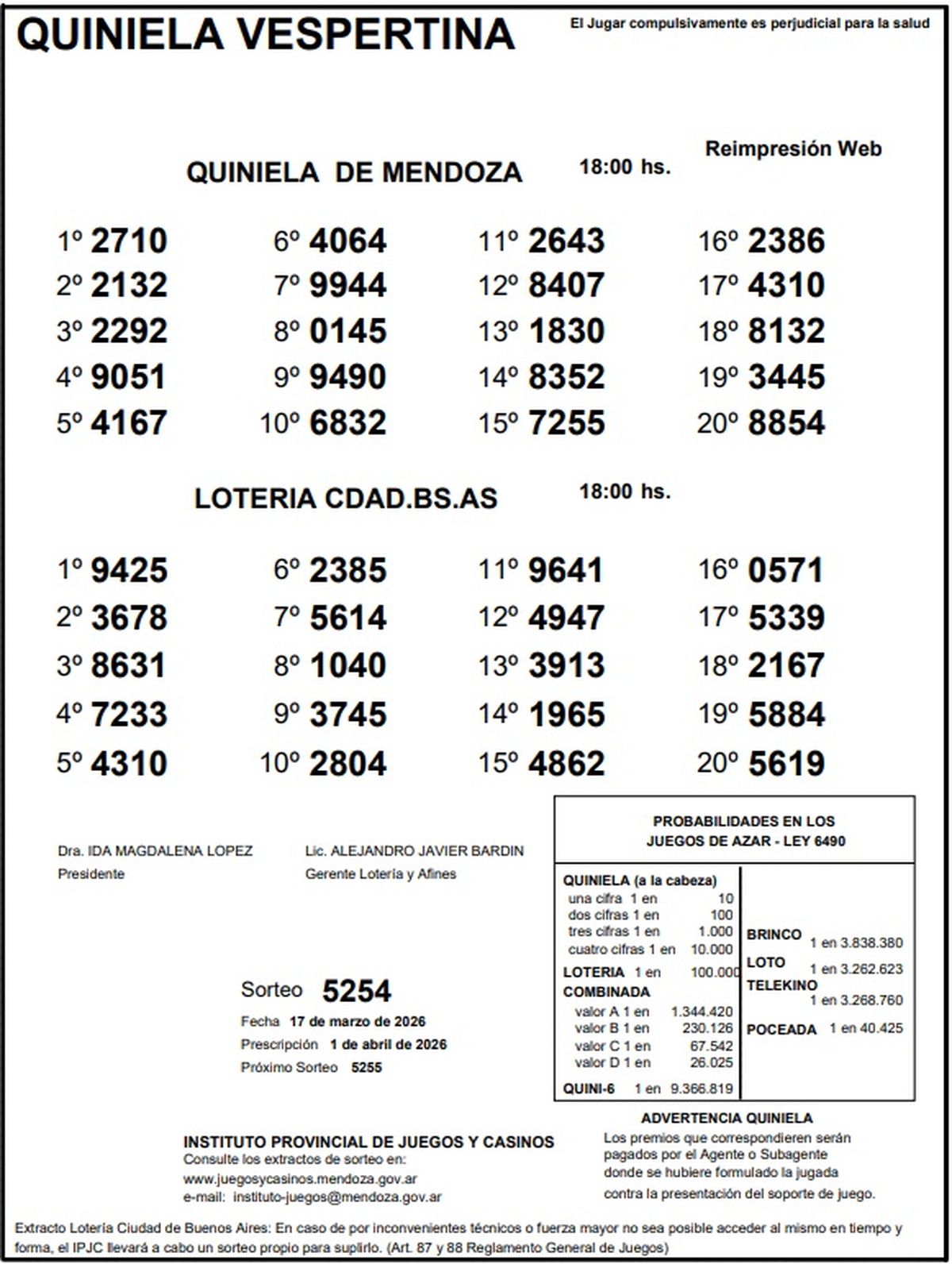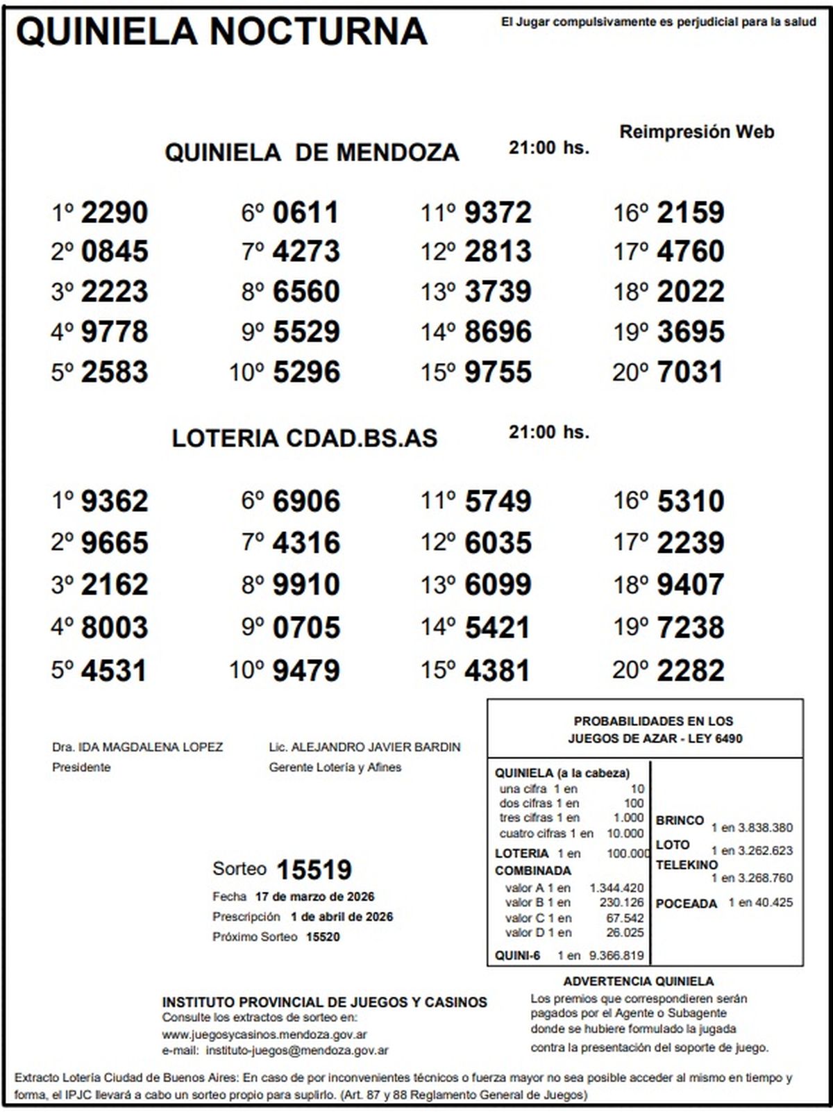 Quiniela de Mendoza: resultados de la Nocturna de hoy, 17 de marzo de 2026