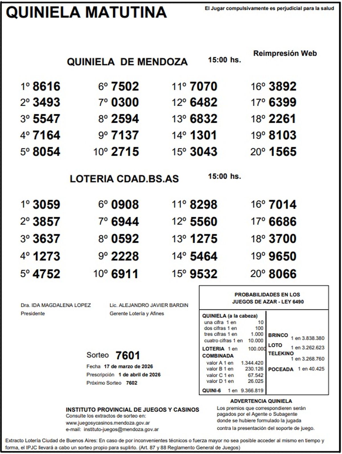 Resultados Quiniela de Mendoza: La Matutina del 17 de marzo de 2026