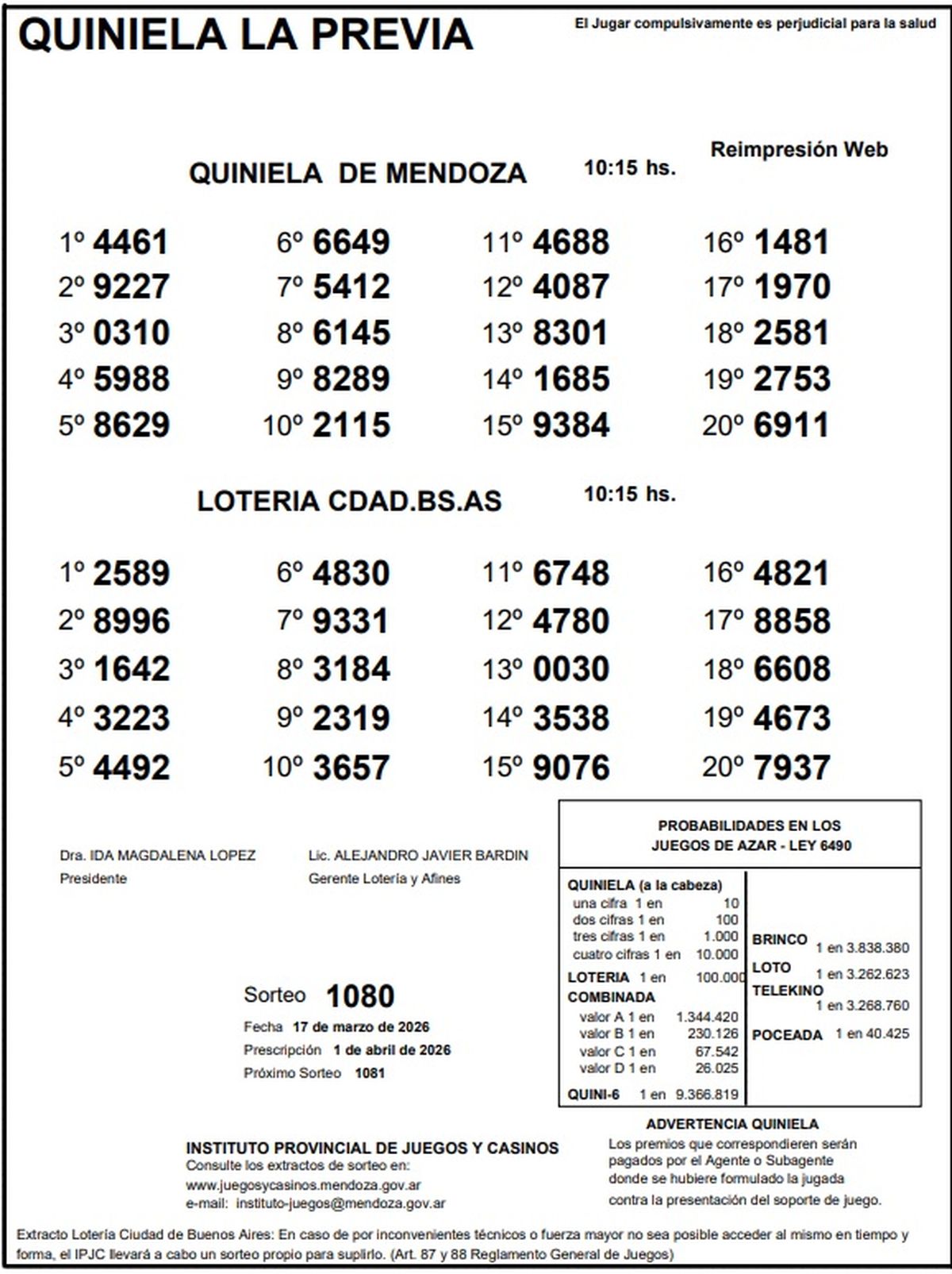 Resultados Quiniela de Mendoza: La Previa del 17 de marzo de 2026