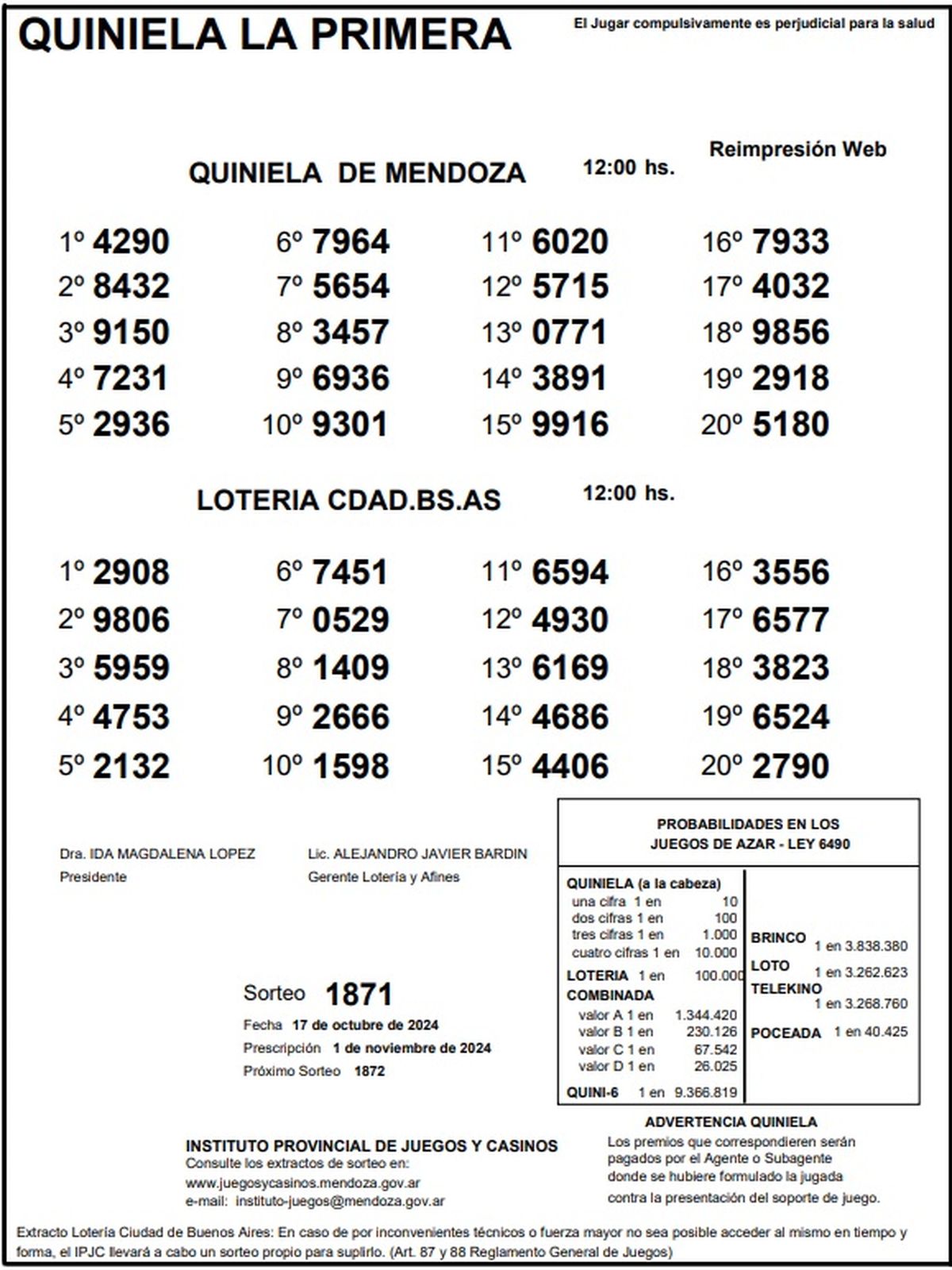 Resultados Quiniela de Mendoza: La Primera del 17 de octubre 2024