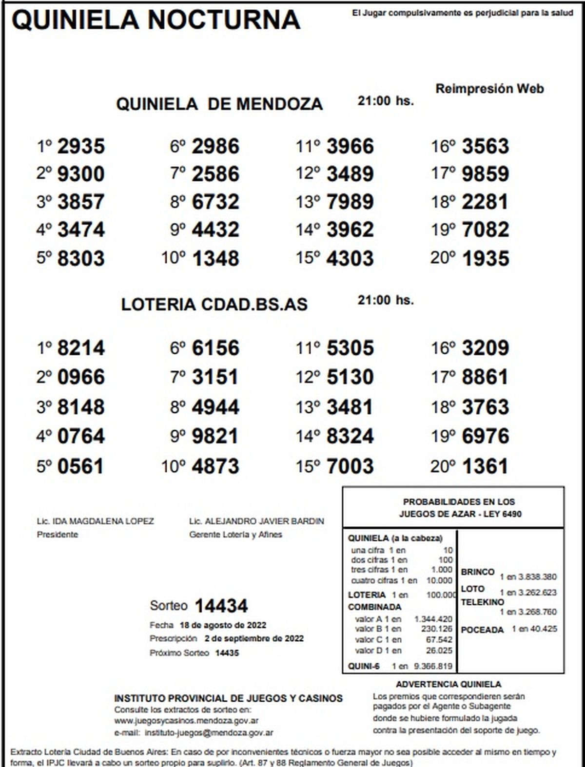Quiniela de Mendoza: resultados de la Nocturna de hoy, 18 de agosto de 2022