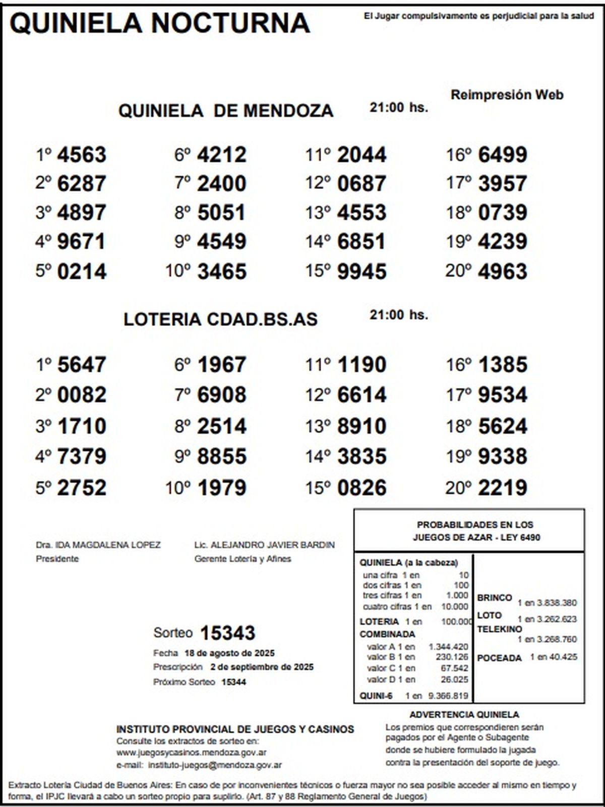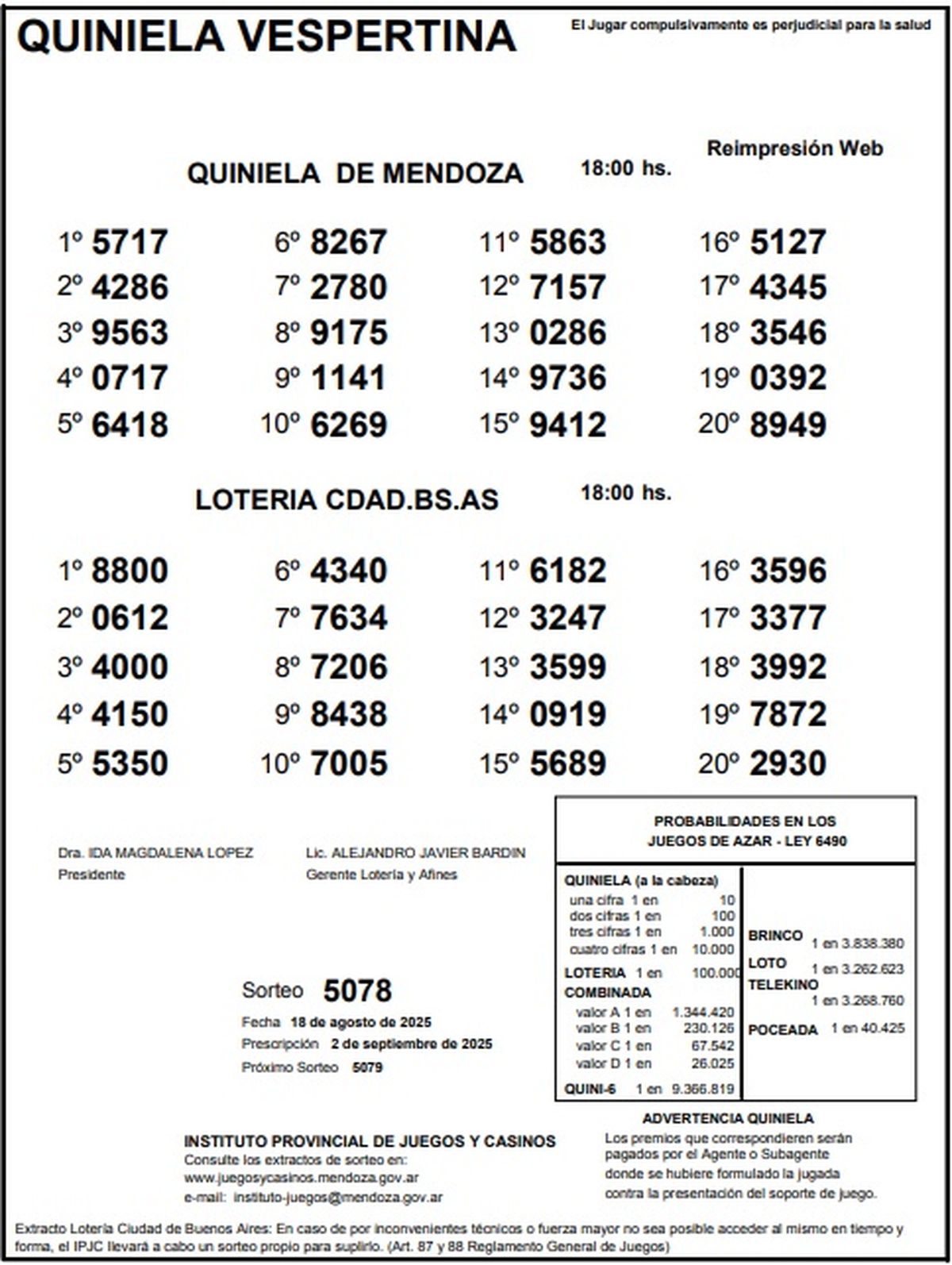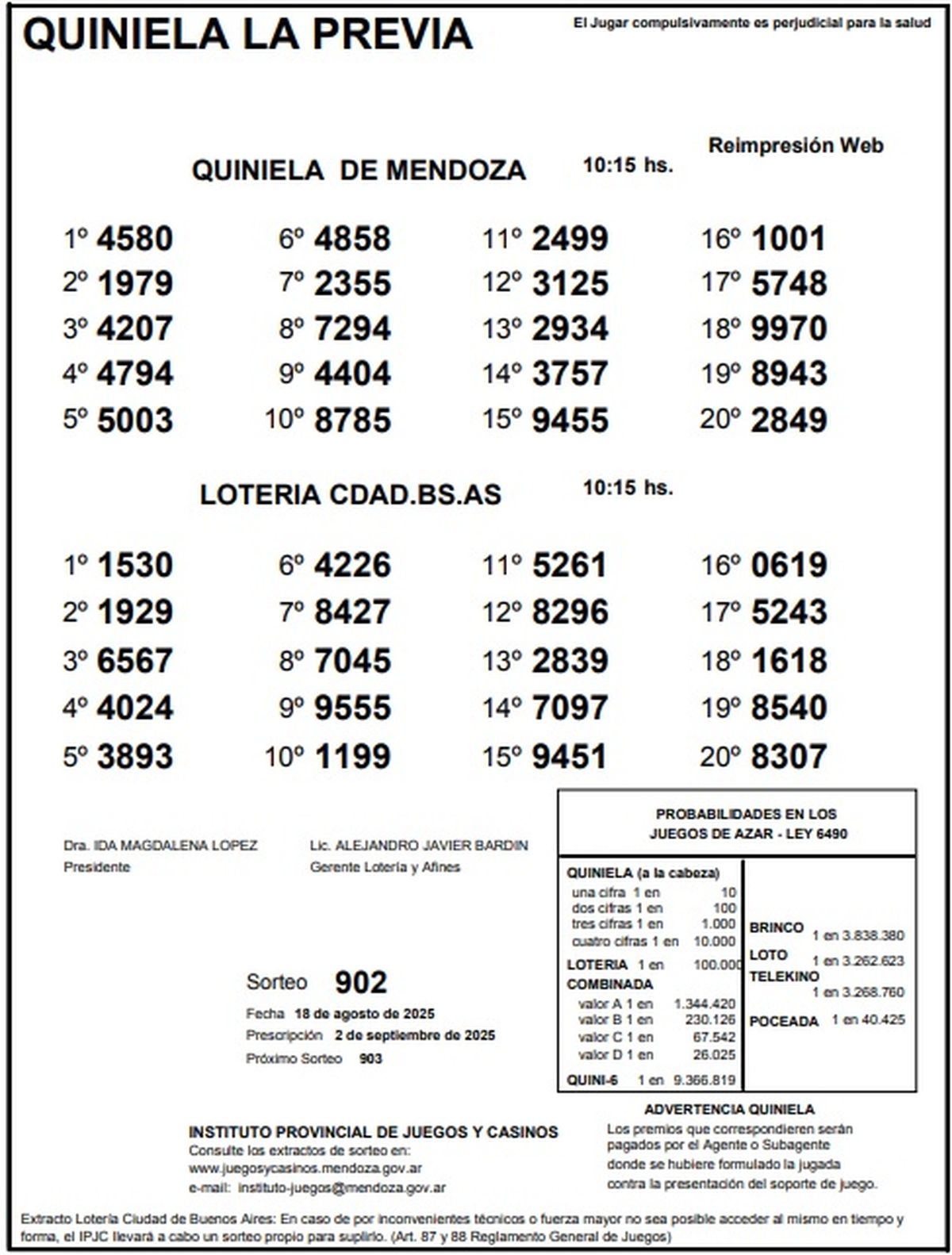 Resultados Quiniela de Mendoza: La Previa del 18 de agosto de 2025