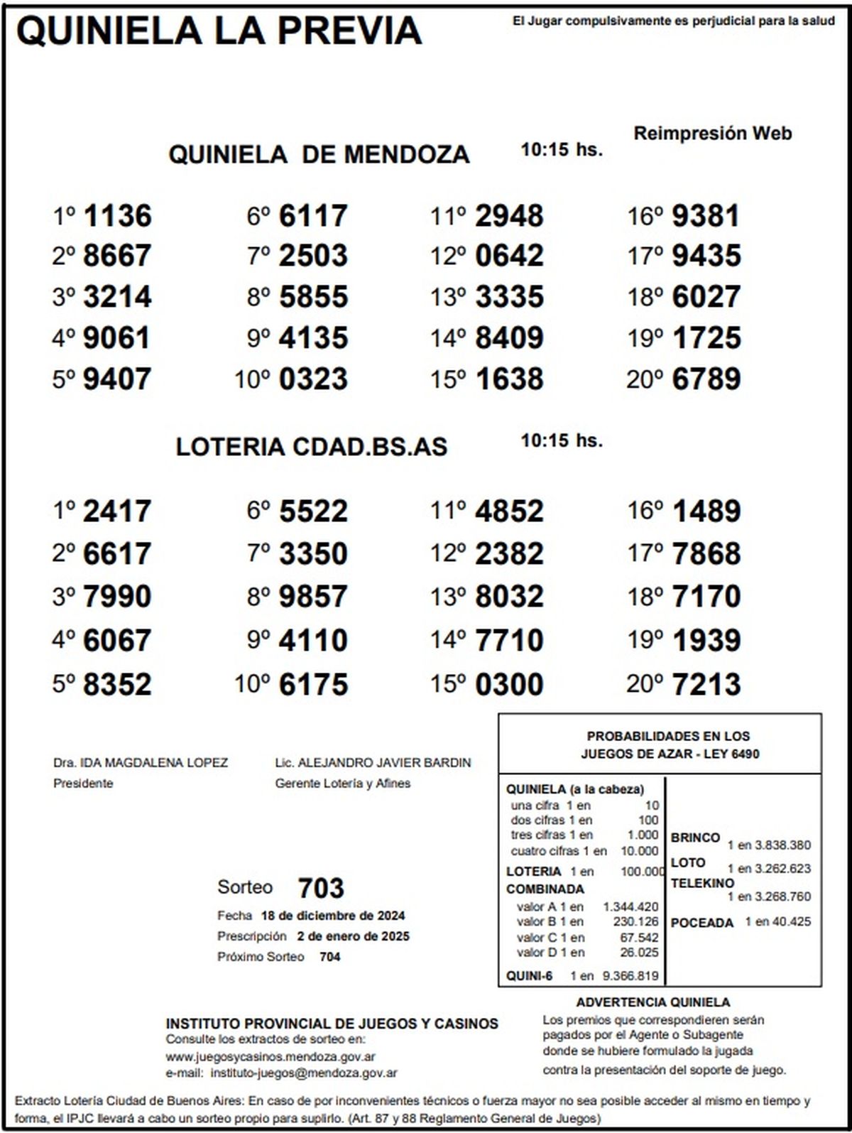 Resultados Quiniela de Mendoza: La Previa del 18 de diciembre de 2024