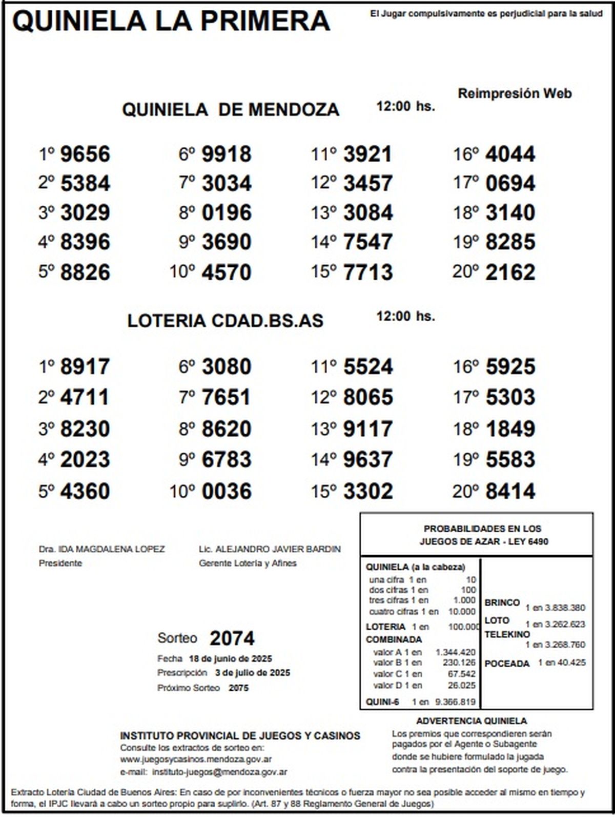 Resultados Quiniela de Mendoza: La Primera del 18 de junio de 2025