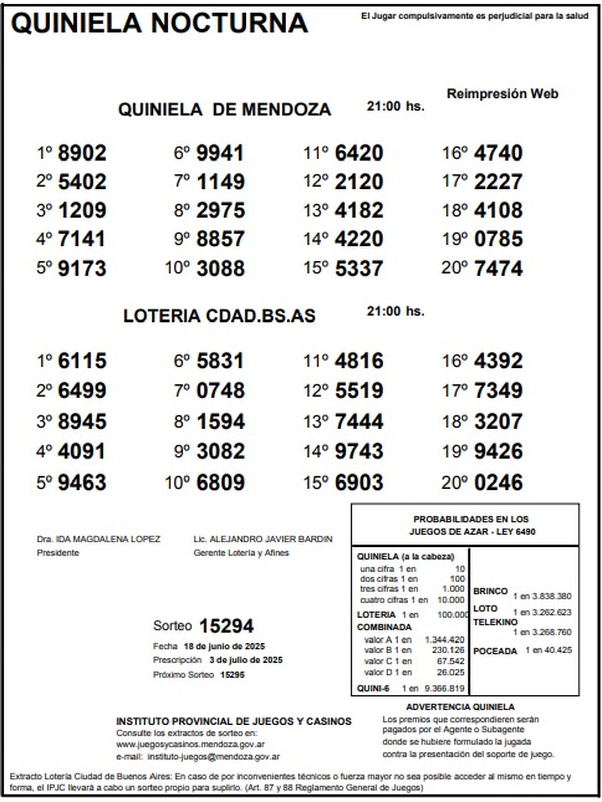 Quiniela de Mendoza: resultados de la Nocturna de hoy, 18 de junio de 2025
