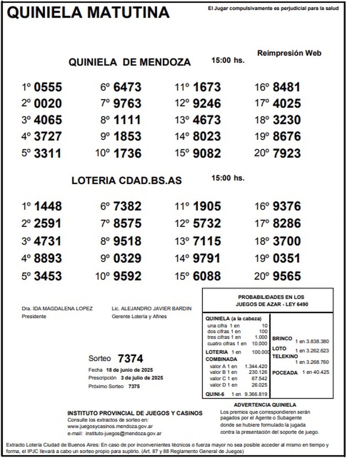Resultados Quiniela de Mendoza: La Matutina del 18 de junio de 2025