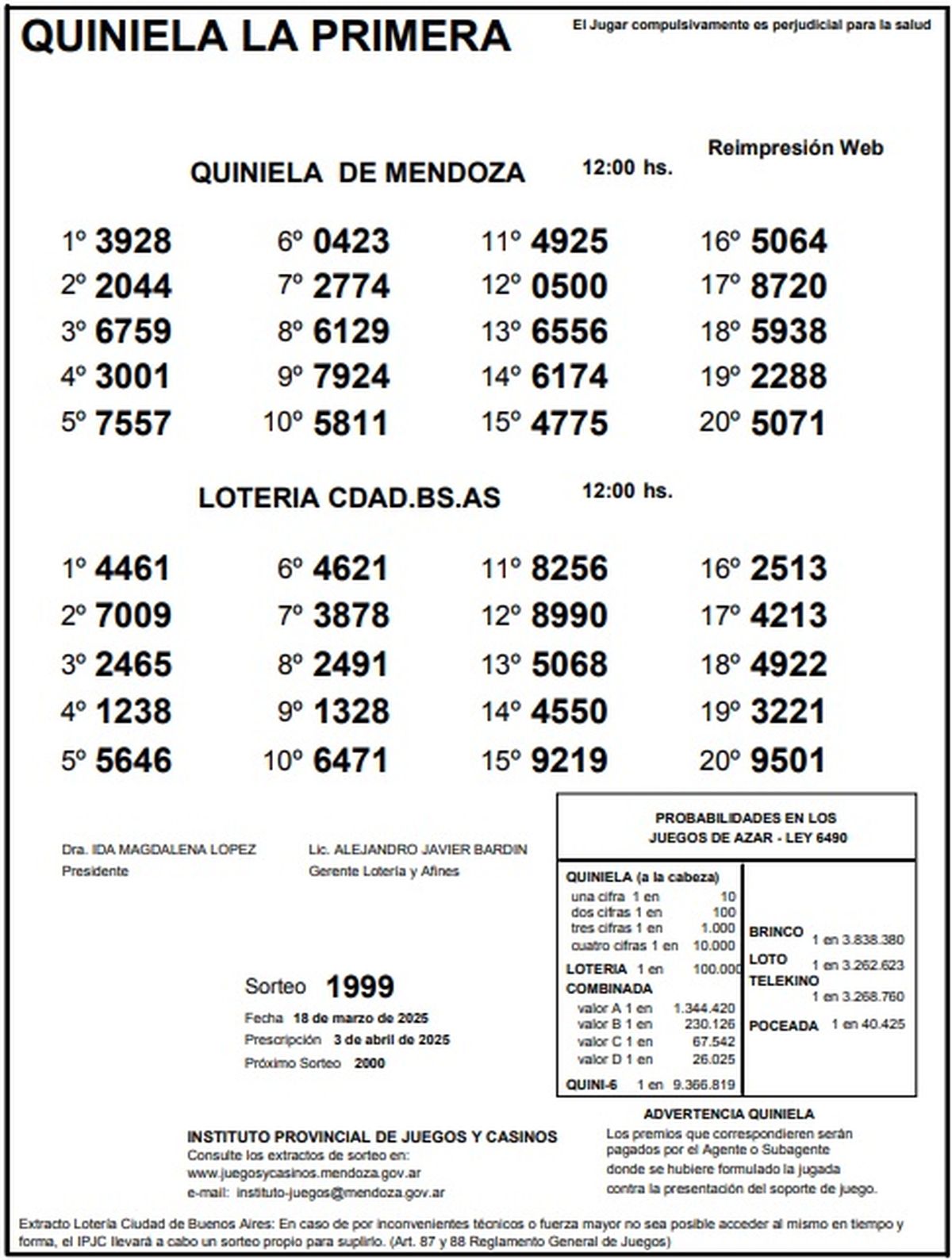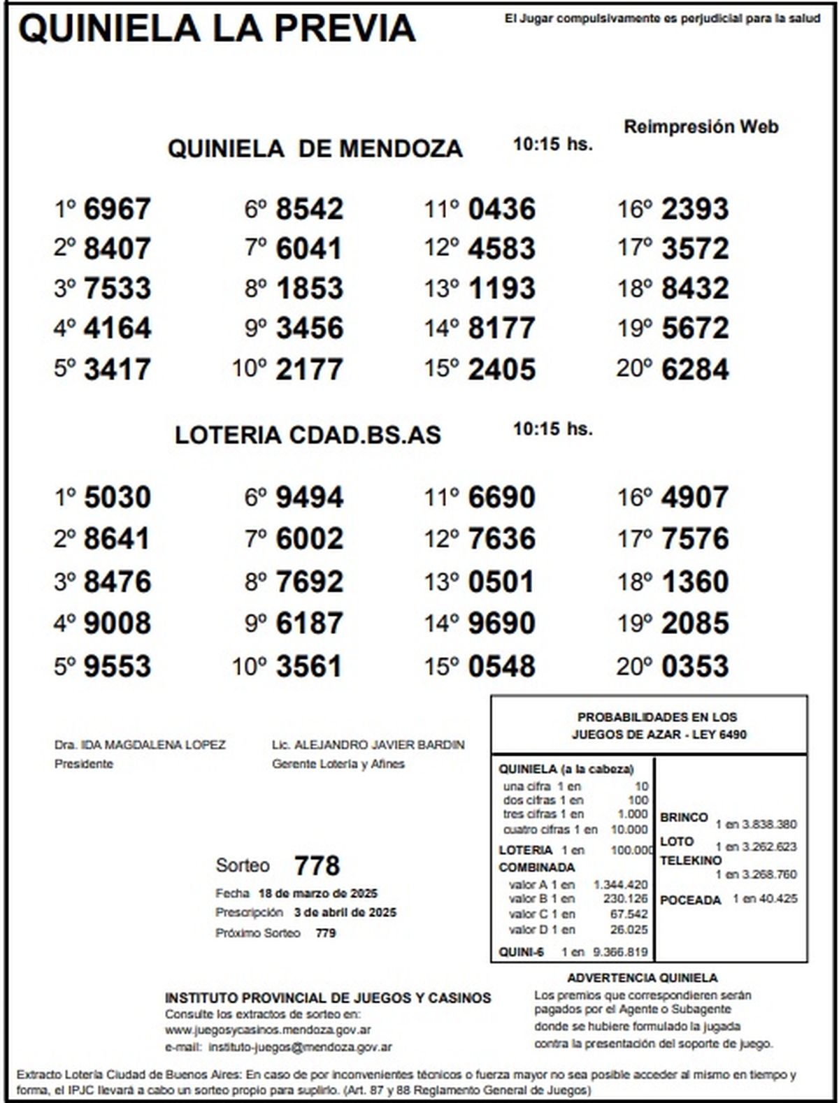 Resultados Quiniela de Mendoza: La Previa del 18 de marzo de 2025