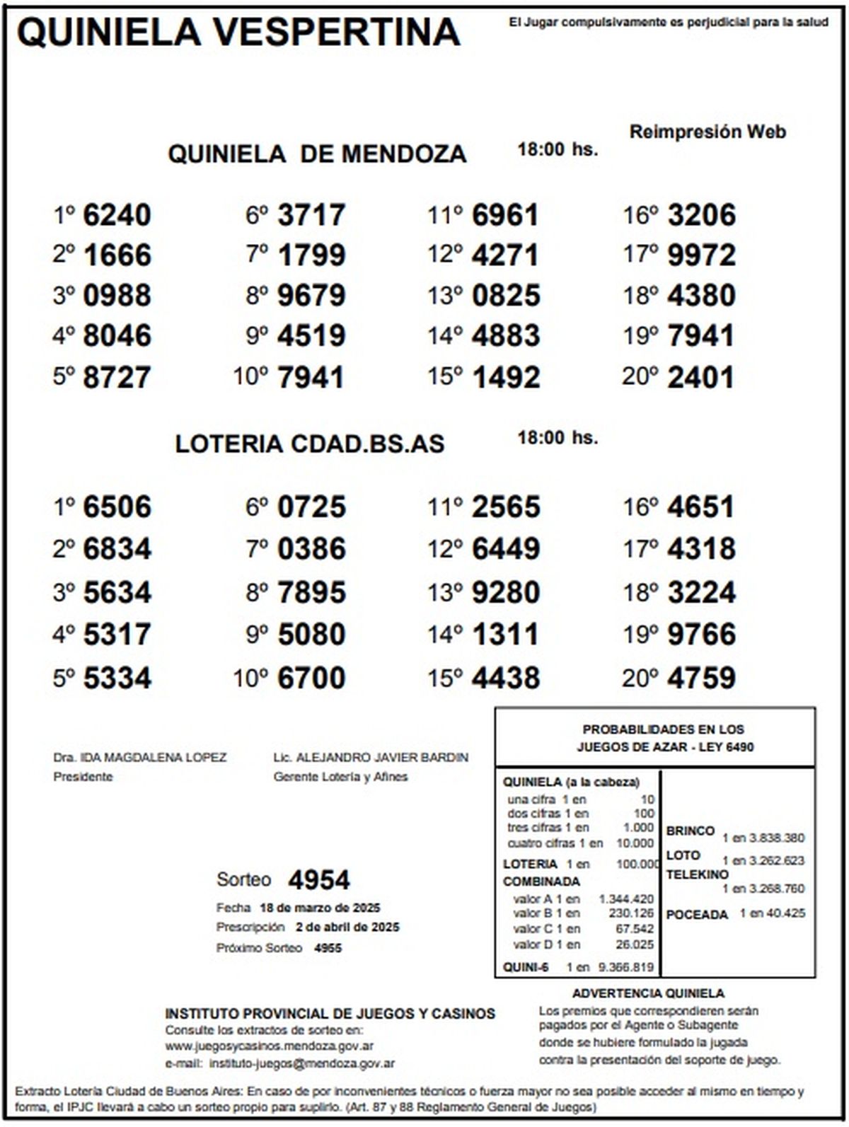 Resultados Quiniela de Mendoza: La Vespertina del 18 de marzo de 2025