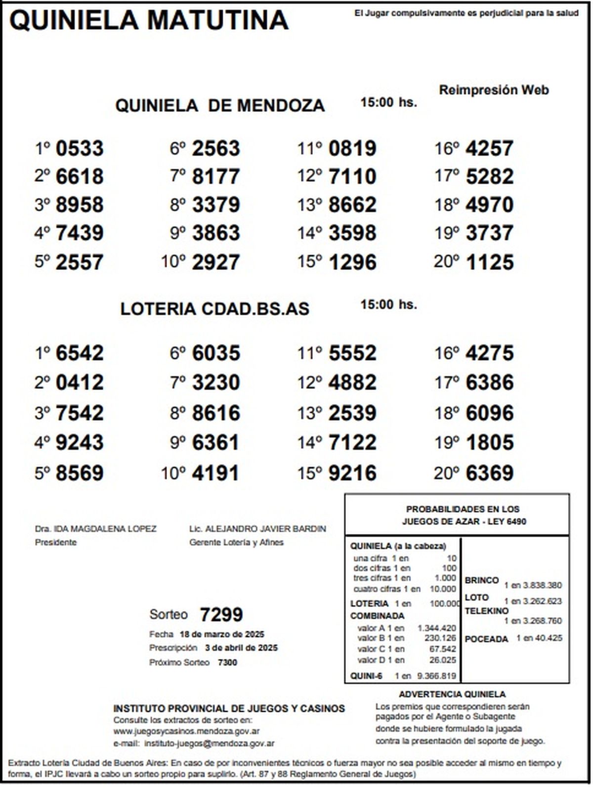 Resultados Quiniela de Mendoza: La Matutina del 18 de marzo de 2025