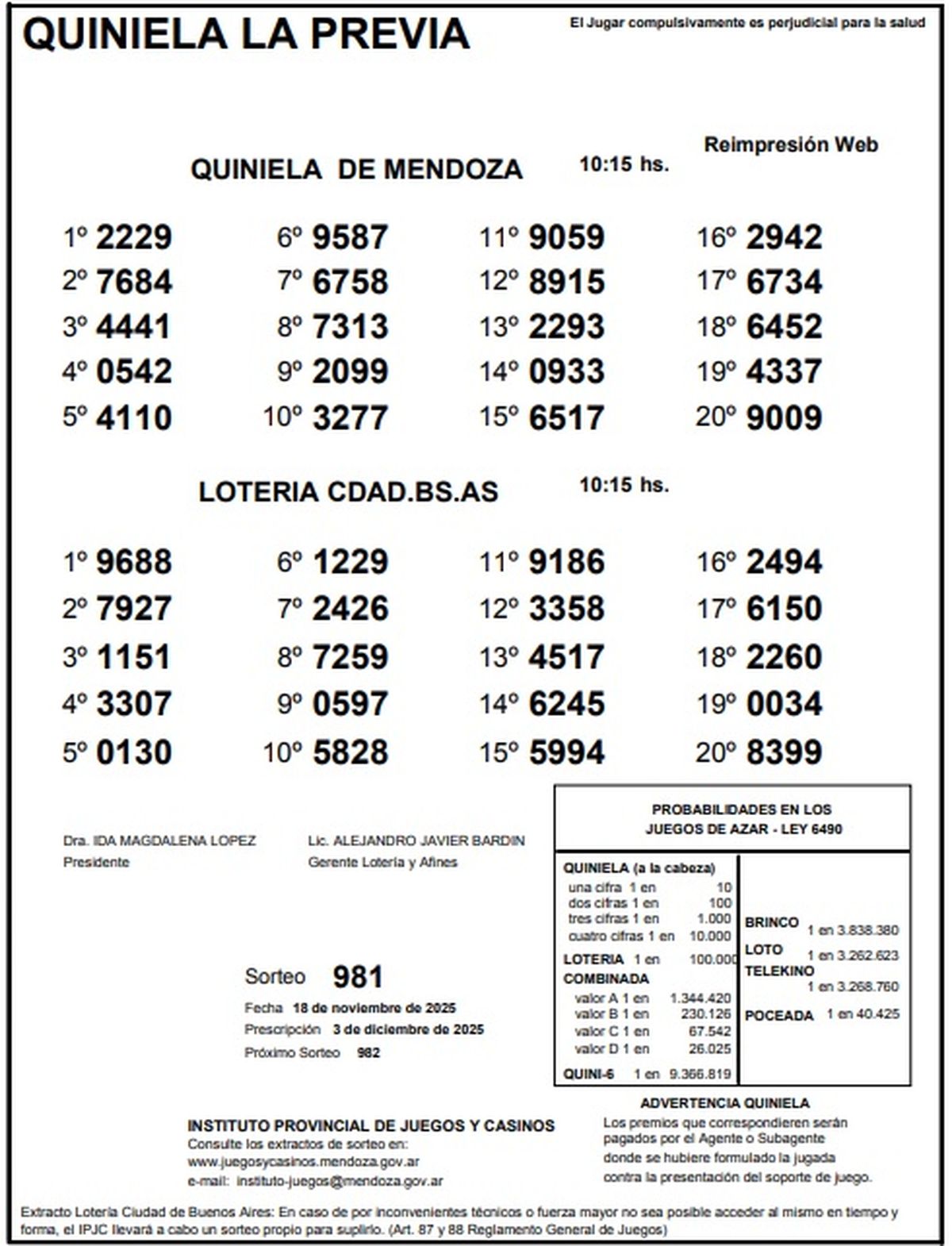 Resultados Quiniela de Mendoza: La Previa del 18 de noviembre de 2025