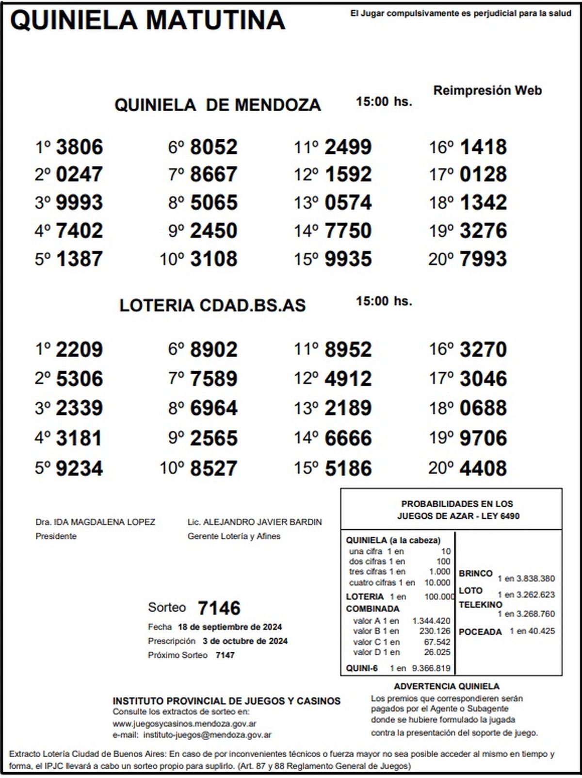 Resultados Quiniela de Mendoza: La Matutina del 18 de septiembre 2024
