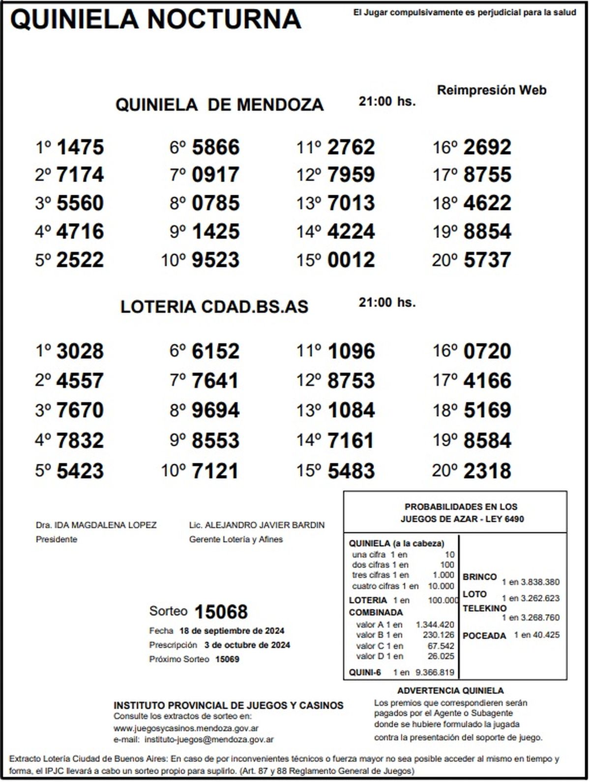 Quiniela de Mendoza: resultados de la Nocturna de hoy, 18 de septiembre de 2024